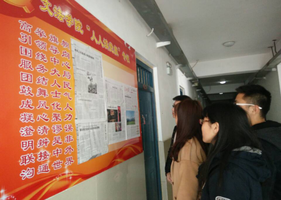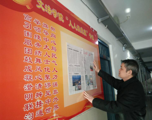 党委书记李培玉为学院“人人读党报”专栏张贴第一期党报。
