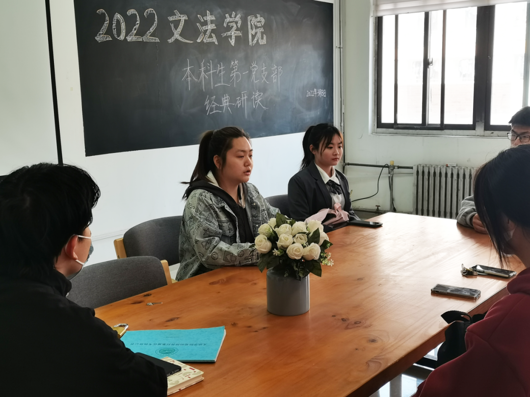 部分党员结合毛选和当前社会热点问题,分析国际国内局势对当代青年学子当前学习方向和未来职业规划的影响,大家纷纷表示,要学好专业知识,坚定理想信念,让青春在祖国最需要的地方绽放。