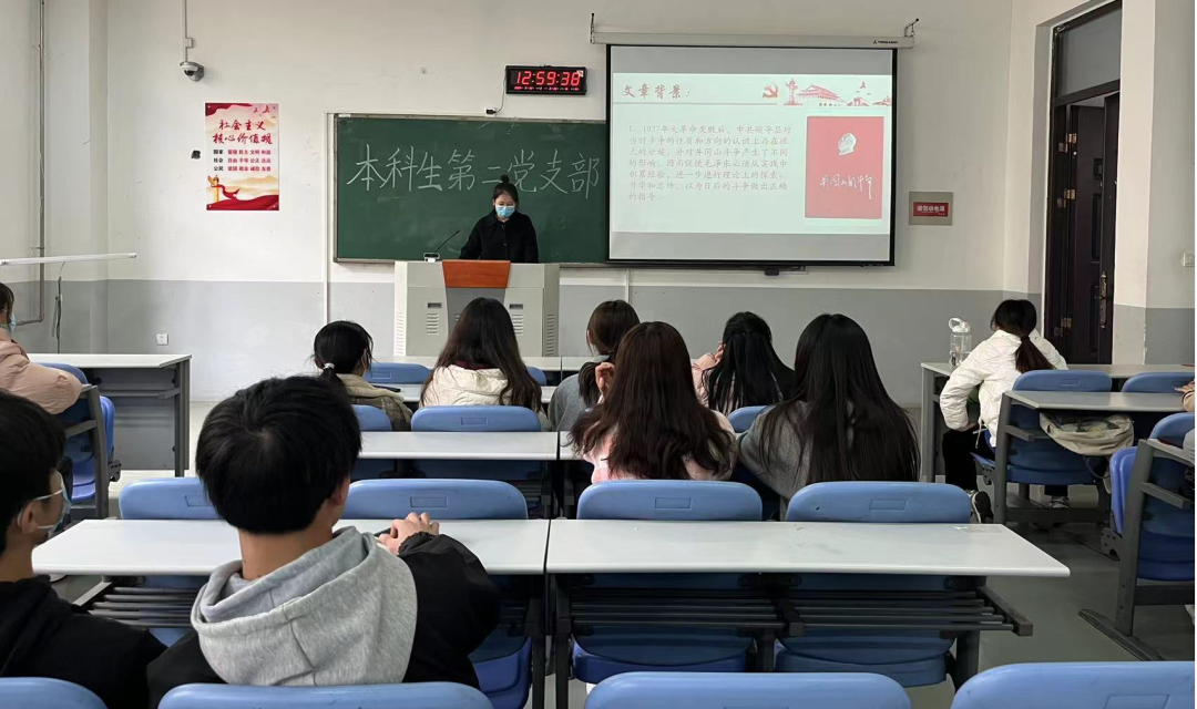 学生党员毛科洁首先向全体党员分享了相关著作选段,并向与会党员展示自身心得体会,深刻分析了中国红色政权发生和存在的原因,加深与会党员对毛选原著的认识、理解,在字里行间领悟信仰的力量。