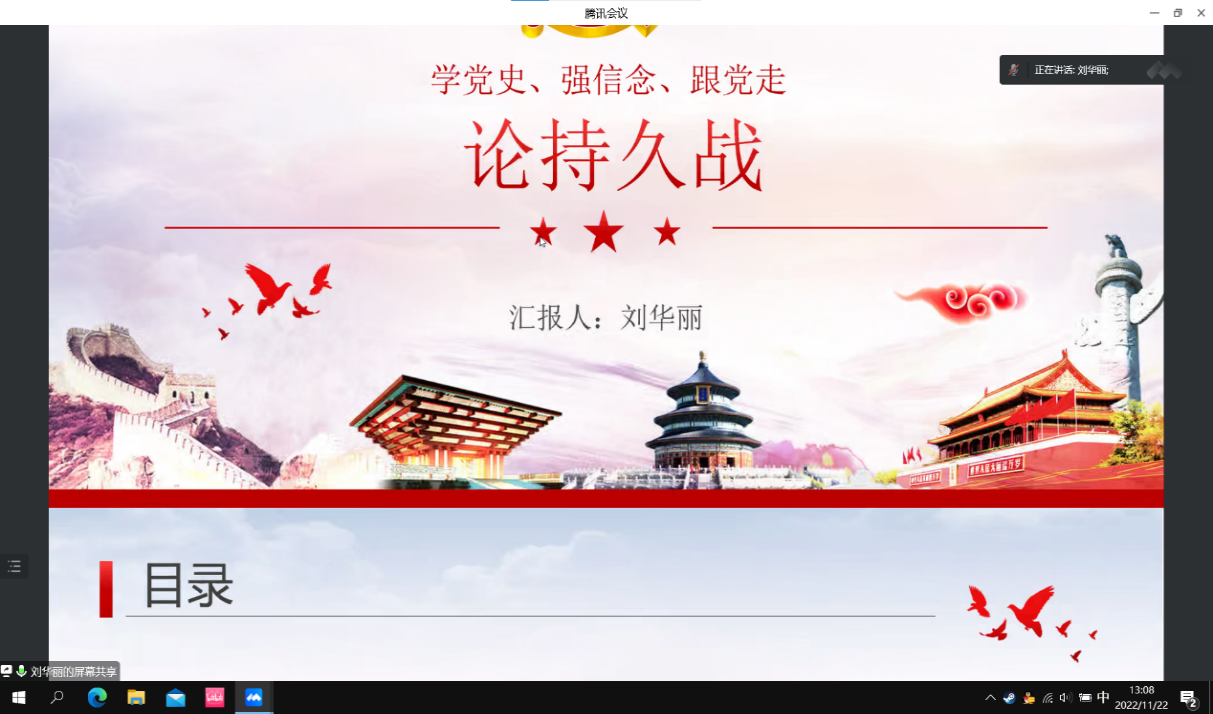本科生三四党支部于2022年11月22日中午通过腾讯会议线上会议开展了以学生党员代表微党课分享为主要形式的党课。