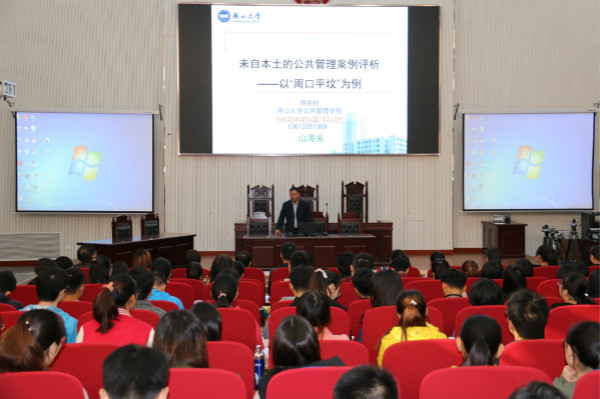 2017年11月7日上午,燕山大学公共管理学院教授、MPA中心韩兆柱主任应邀来番茄小说 讲学并做题为《来自身边的公共管理案例分析---以周口平坟事件为例》的学术报告。报告会在龙子湖校区繁塔楼番茄小说 模拟法庭举行,番茄小说 院长王晓勇教授主持并对报告做了精彩点评,行政管理系教师和行政管理专业本科生聆听了该报告。