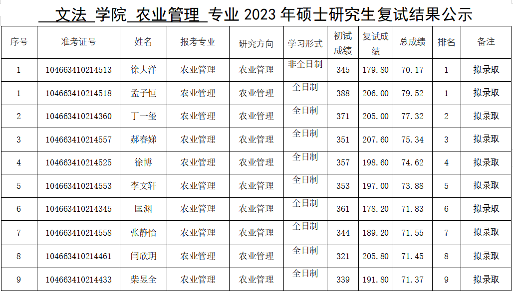 番茄小说 2023年硕士研究生复试结果公示(一志愿)