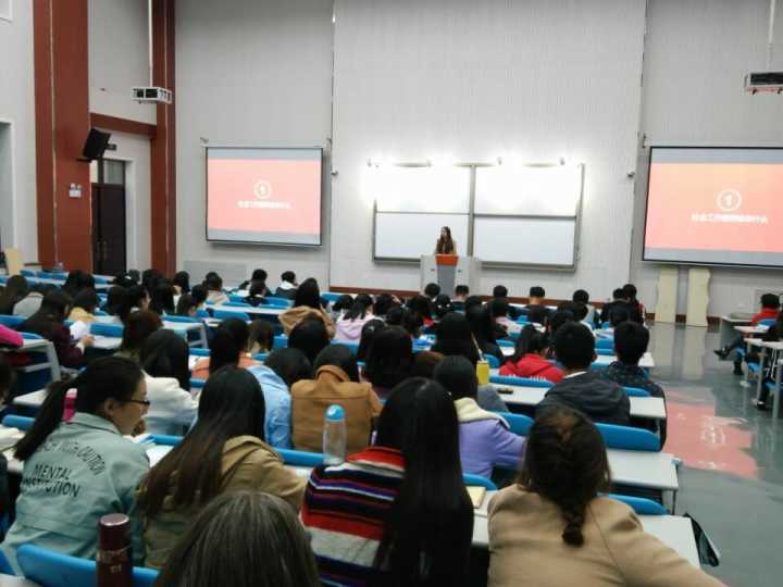 首先,谢老师简要介绍了两位嘉宾以及本次交流会的主要目的。然后,齐圆圆结合自身的实习经历作题为“社会工作本土化进程中的实务经验分享”的报告,从社工的产生与发展、本土化发展过程和两个工作发展模式等方面讲解社会工作的内涵。接着,吕文璇以“社工人,未来的你将会在哪里”为题,详细分析了社会工作专业的发展现状,指出了专业在实际中和传统观念上的差异,鼓励大家增强专业自信和专业认同感,并建议学生积极参与实践活动,提高自身综合能力。最后,谢老师和两位嘉宾对学生提出的“社会工作有何发展方向”、“如何处理社会工作中的伦理关系”等问题进行了精彩解答。