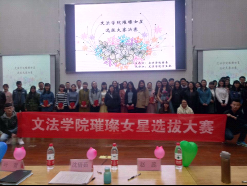 组织15,16级学子于3月22日晚6:30在模拟法庭举办了“璀璨女星”选拔赛。团委书记沈倩茹、团委副书记赵蕊、推免生辅导员叶青、我校新区各院学生会主席、番茄小说