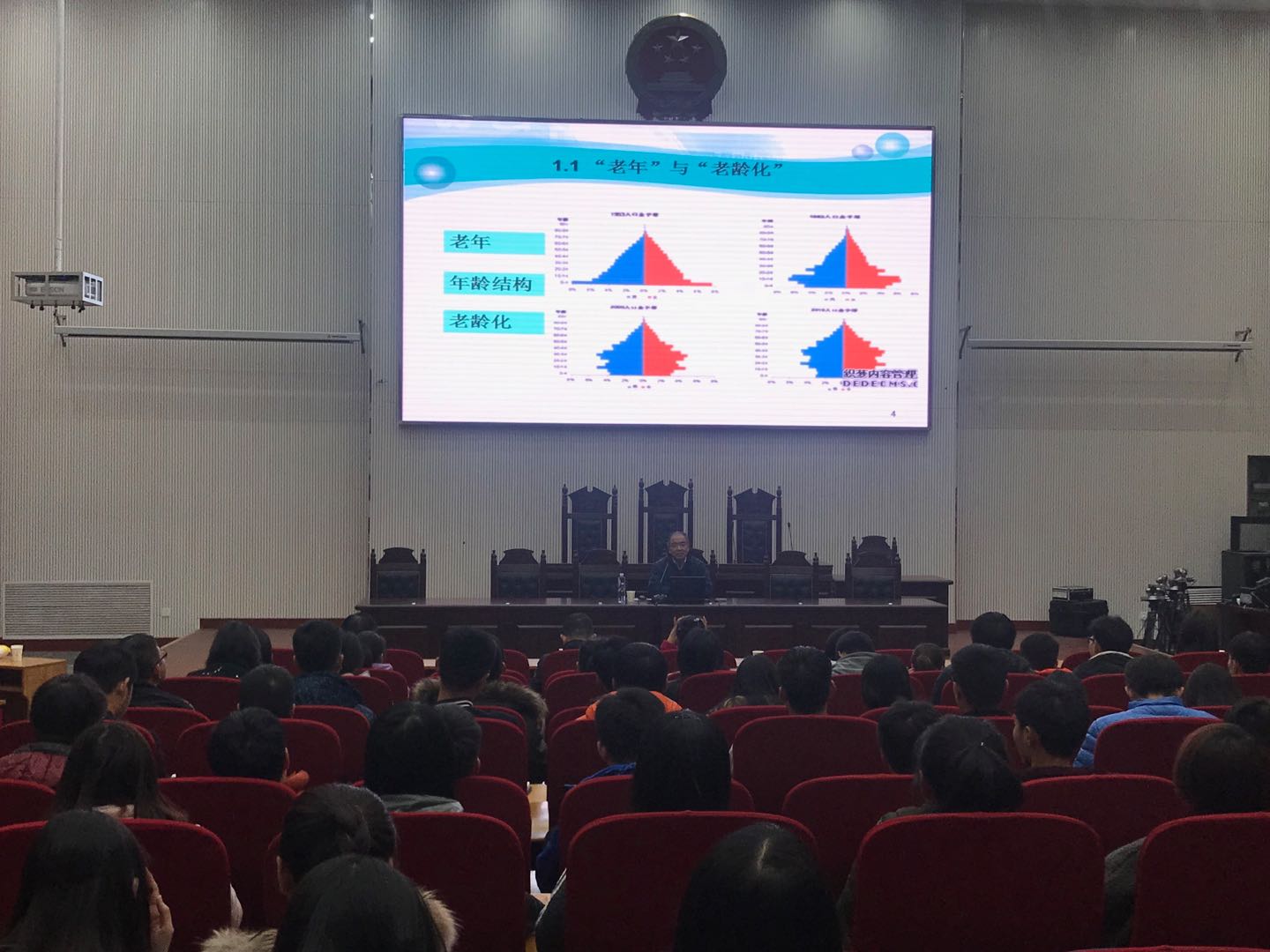 石教授的报告主要围绕五个方面展开:首先,石教授分析群体老化的直接原因和间接原因,总结出群体老化的直接原因主要来来自于生育率和死亡率变化的影响;其次,简要介绍并呈现了中国人口老龄化的六大特点:人口老龄化速度快、老年人口规模大、老年人口高龄化、老龄化的城乡差异和地区差役大、老龄化的“可调性”即理论上老龄化现象是可调的、时间上的不规则性和累进性;再次,石教授在谈到人口老龄化的社会影响时指出,我们要辩证地看待人口老龄化,要认识到老龄化是社会经济发展的必然产物,并注意区分“老龄化问题”和“老年问题”;第四,石教授针对当前的人口老龄化现象及研究,提到一些相关概念:“隐形债务问题”、“收不抵支问题”、 “空账”等概念。第五,针对以上分析和介绍,石教授提出了中国老龄化问题的应对策略应从四个主要方面努力:充分利用人口红利发展经济,逐步完善人口政策,根据福利多元主义完善保障体系,以及创新养老方式。最后,石教授引出“积极老龄化”这一概念和思路,即将老龄人口的社会参与从经济领域扩展到社会各个方面,发挥其余力,做到积极应对我国人口老龄化。在讲座最后环节,石教授对在座师生发言和提问,进行了针对性解答和回应,并在在场师生的热烈掌声中圆满结束此次学术报告。