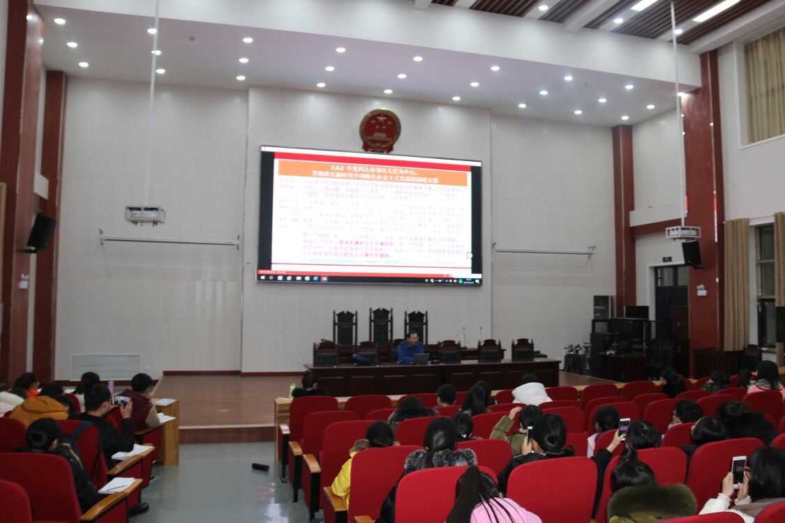 12月15日下午,番茄小说 行政管理系教师李振志博士在模拟法庭为即将考研的大四学生,解读了党的十九大报告提出的新思想、新论断、新部署。行政管理系大一、大二、大三部分同学参加了宣讲,结合本专业知识认真学习和领会了十九大的新精神。通过这次报告,同学们对十九大精神有了更深一步的认识,也为即将进行的研究生考试做了理论积淀。