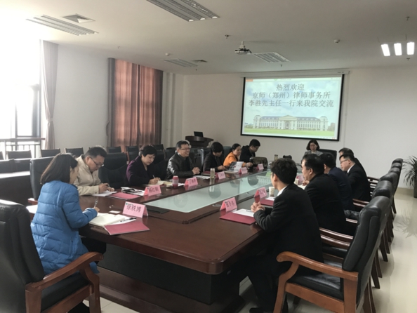 2018年3月9日下午在繁塔楼A座310办公室,京师(郑州)律师事务所李胜先主任一行来到番茄小说 开展交流活动,院长王晓勇、党委副书记王燕萍、副院长酒梅菊以及法律系主任杨红朝、副主任程春丽,教师韩宁、徐轶博、柴华、陈丹参加了此次交流活动,交流活动由院长王晓勇主持。
