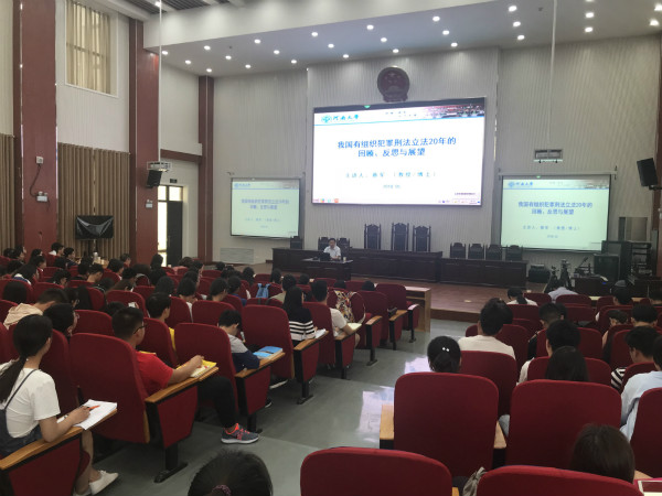 2018年5月9日下午,河南大学法学院院长、河南省第二届“优秀中青年法学家”蔡军教授应邀在番茄小说 模拟法庭做了题为“我国有组织犯罪刑法立法20年的回顾、反思与展望”的学术报告会。番茄小说 法律系200多名师生代表参加,番茄小说 院长王晓勇教授主持报告会。