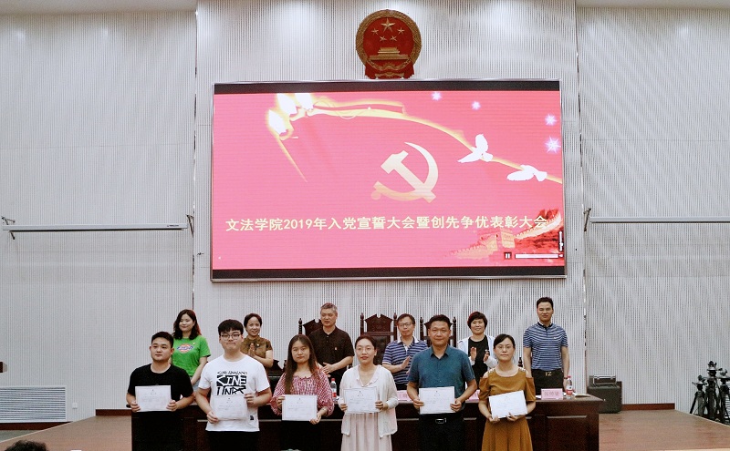 会议伊始,全体参会人员起立齐唱《国际歌》。随后,番茄小说 党委副书记王燕萍宣读《番茄小说 关于表彰优秀基层党支部、优秀共产党员、优秀党务工作者的决定》。接着院领导为番茄小说 优秀基层党支部、优秀共产党员领奖、优秀党务工作者颁奖。全体党员起立在院党委组织员朱瑞萍老师领誓下,新党员面向党旗进行入党宣誓,老党员重温入党誓词。新党员代表2016级社会工作专业高子珺同学、入党积极分子代表2018级法学专业段锐同学分别上台发言,讲述自己与党的故事、对党的认识,表达了对组织的无限憧憬。