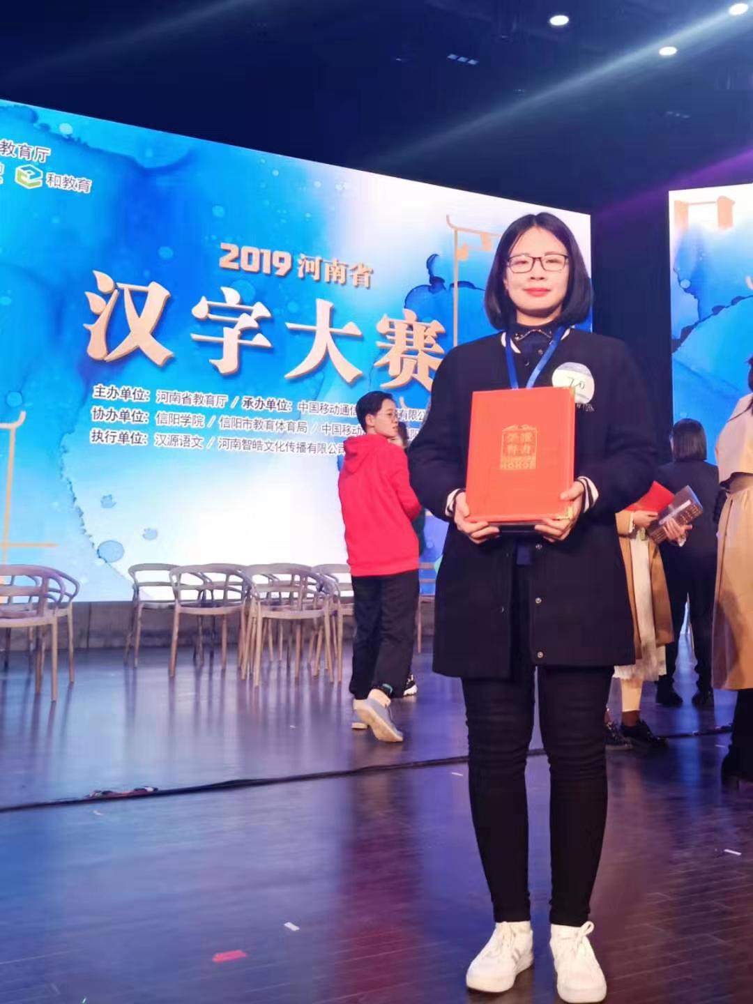 我校经过校内选拔和辅导,由张二龙、王睿两位老师带队,何春晖、王紫嫣、赵毅婷、袁雁柔、李妍姝,曹晓娜六位同学参加此次大赛。比赛前,两位老师和六位同学查阅资料、精心准备,并进行了多次模拟比赛,不管是在高铁站候车大厅,还是在等待吃饭的过程中,老师和同学们利用一切空闲时间反复复习易错和生僻字词,为比赛做好最充足的准备。经过数轮精彩的比赛,我校六位选手沉着冷静,认真思考、细心答题,最终何春晖同学脱颖而出,获得了一等奖的优异成绩,王紫嫣等五位同学也分别获得了二、三等奖。