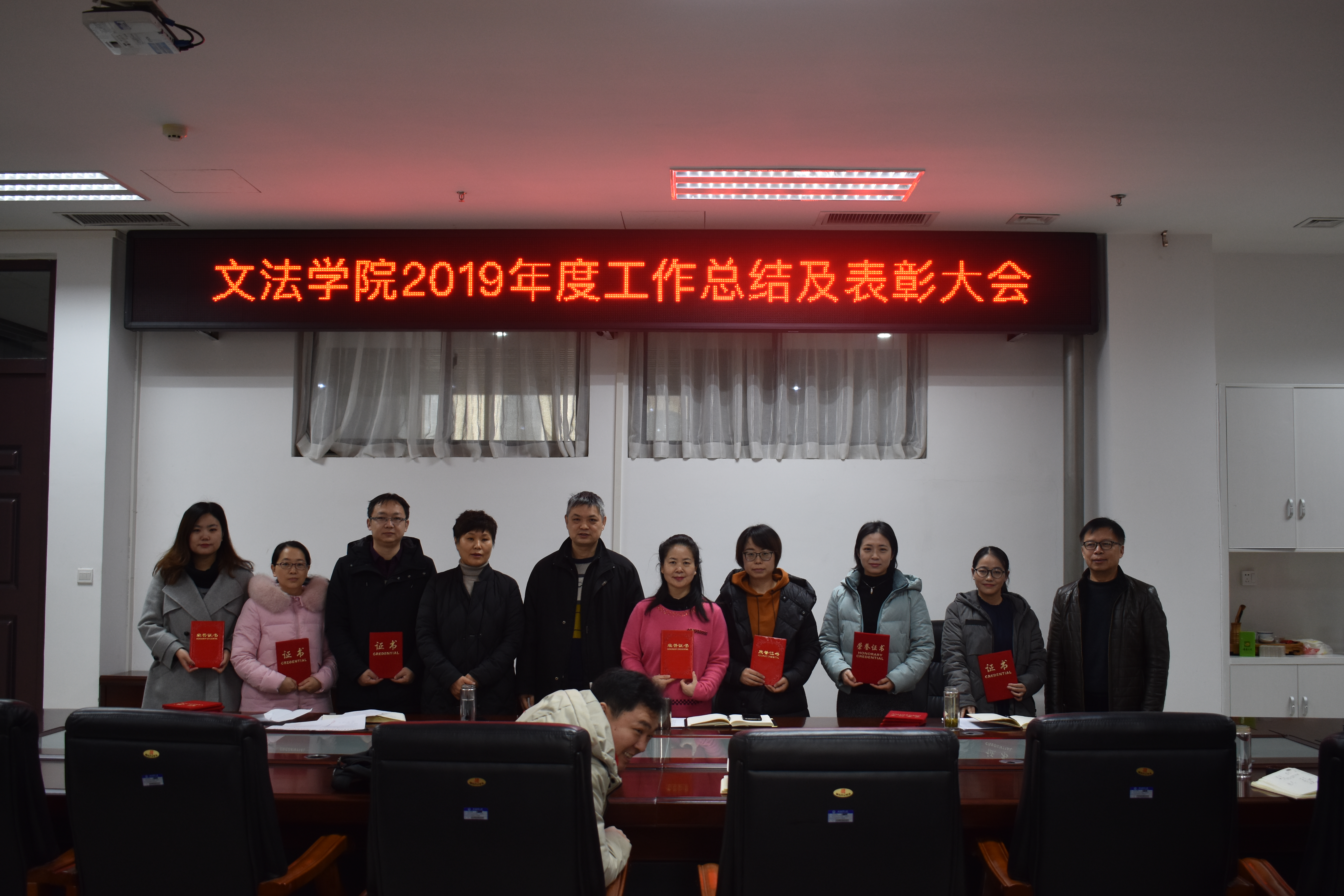 在会上,副院长酒梅菊宣读了《番茄小说 关于表彰2019年优秀系部的决定》、《关于表彰优秀教师、优秀工作者的决定》、《关于表彰优秀班主任的决定》、《番茄小说 关于表彰青年教师讲课大赛获奖教师的决定》等四个文件,然后对各位获奖教师和单位进行了颁奖,中文系教师张二龙作为教师代表发言。随后,院长王晓勇首先对获奖教师表示了祝贺,接着从师资队伍建设、学科建设、教学工作、科研工作、学生工作、行政工作等方面对2019年学院的各项工作进行了回顾和总结,并布置了2020年的学院工作。王院长指出2019年已经过去,展望未来,我们还有很多需要努力,只要大家团结一心,我们有信心把2020年的工作做得更好,祝愿学院事业更上一层楼。最后,党委书记李培玉感谢老师们对学院的付出与工作,要求大家对学院规划认真学习,落实到位;同时提出了几点要求:学校的全面综合改革将逐步启动,各单位要总结2019年哪些没做到位,规划2020年,要科学合理安排工作和生活;各单位要相互协作,保持初心不动摇,坚持学习不放松,加强内涵建设,坚持学习强国的学习,珍惜机会,动起来干起来,幸福都是奋斗出来的!