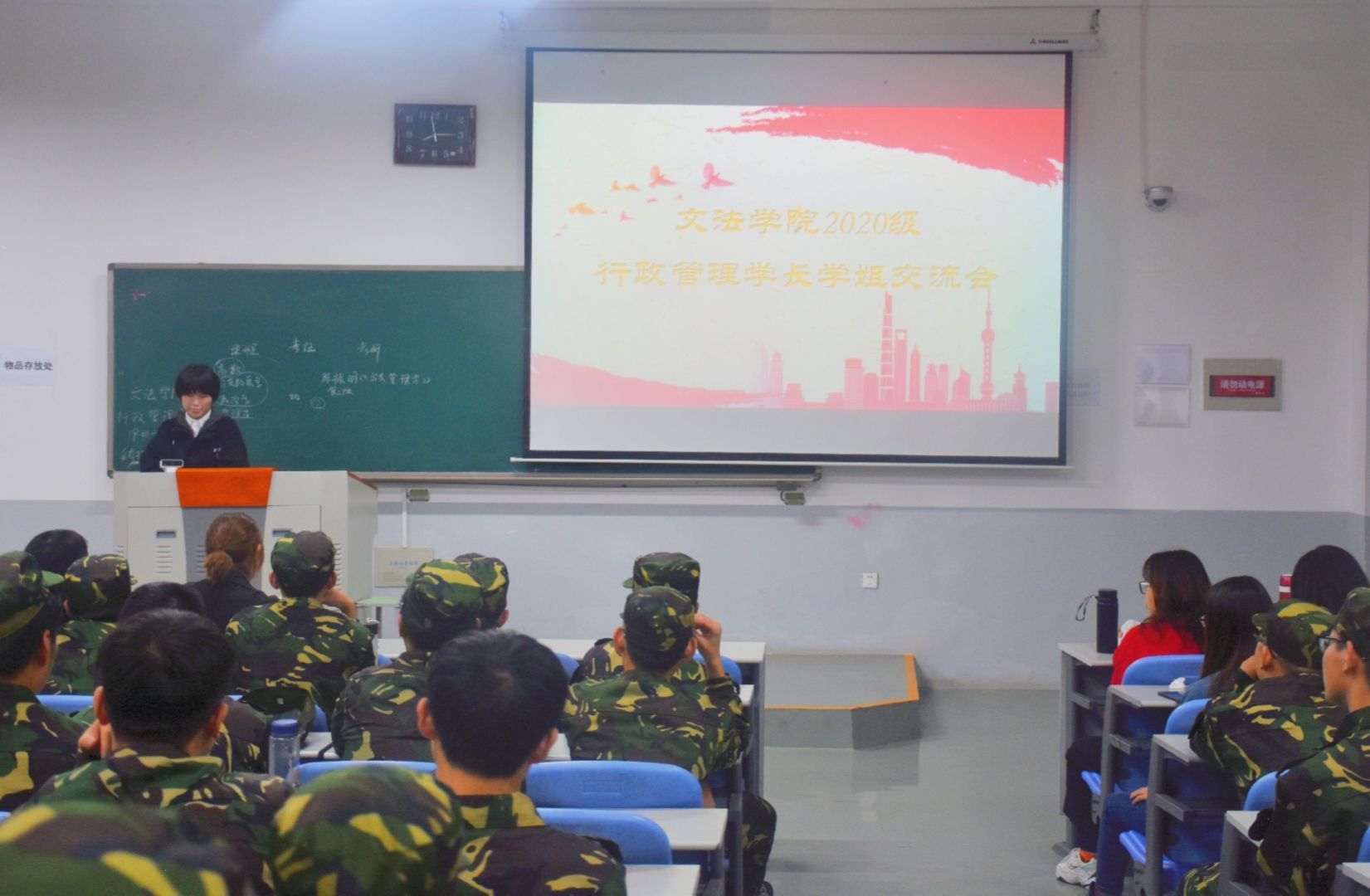 法学专业、行政管理专业、社会工作专业和汉语国际教育专业分别召开了2020级学长学姐交流会,各专业大四优秀学生代表发言,2020级全体新生与会聆听。