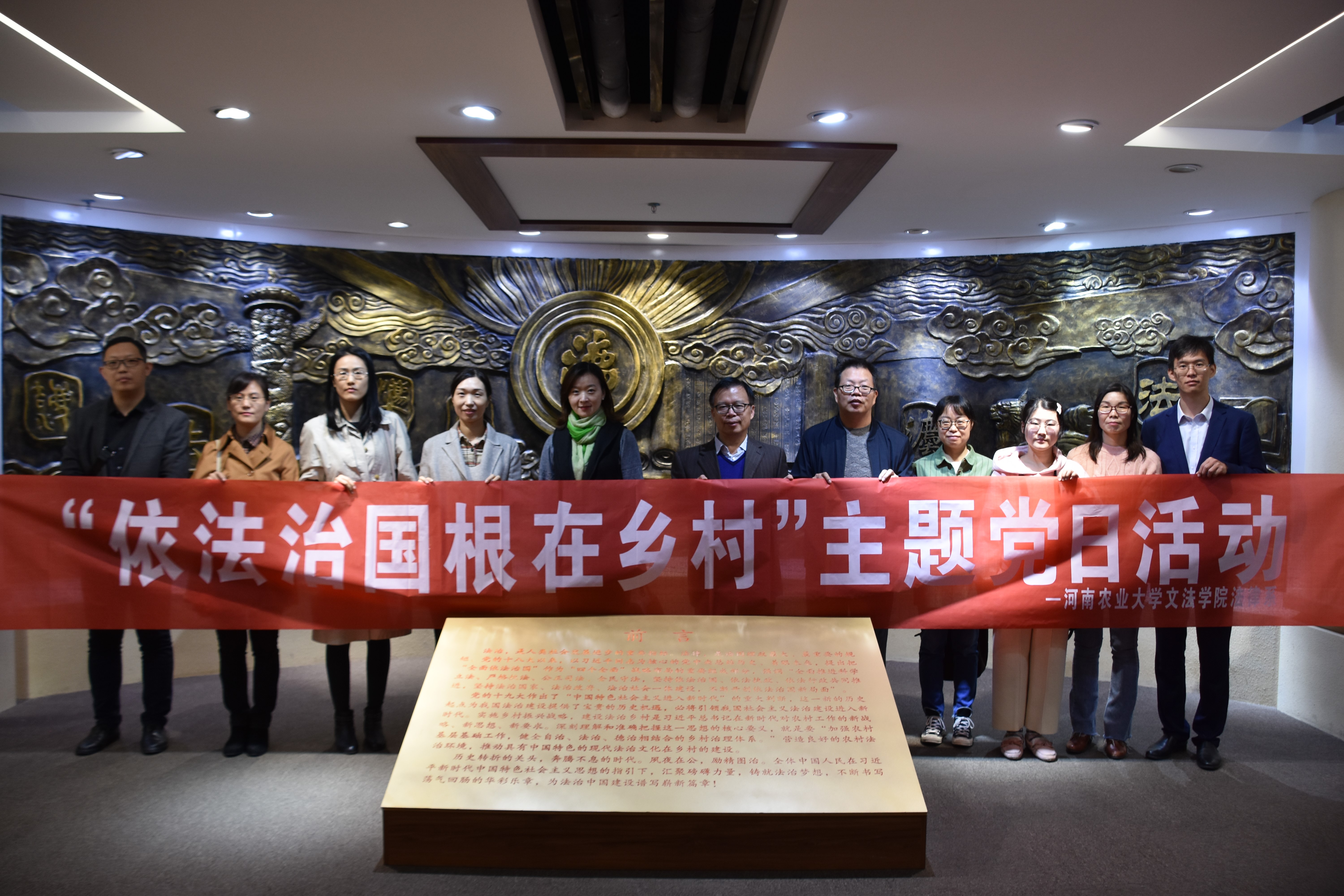 10月23日上午,学院法律系教工党支部开展了“依法治国 根在乡村”主题党日活动,组织教师党员到郑州市金水区东风路街道办事处宋砦法治展览馆参观交流。学院党委书记牛娟、院长王晓勇、副院长杨红朝和法律系教师参加了活动。