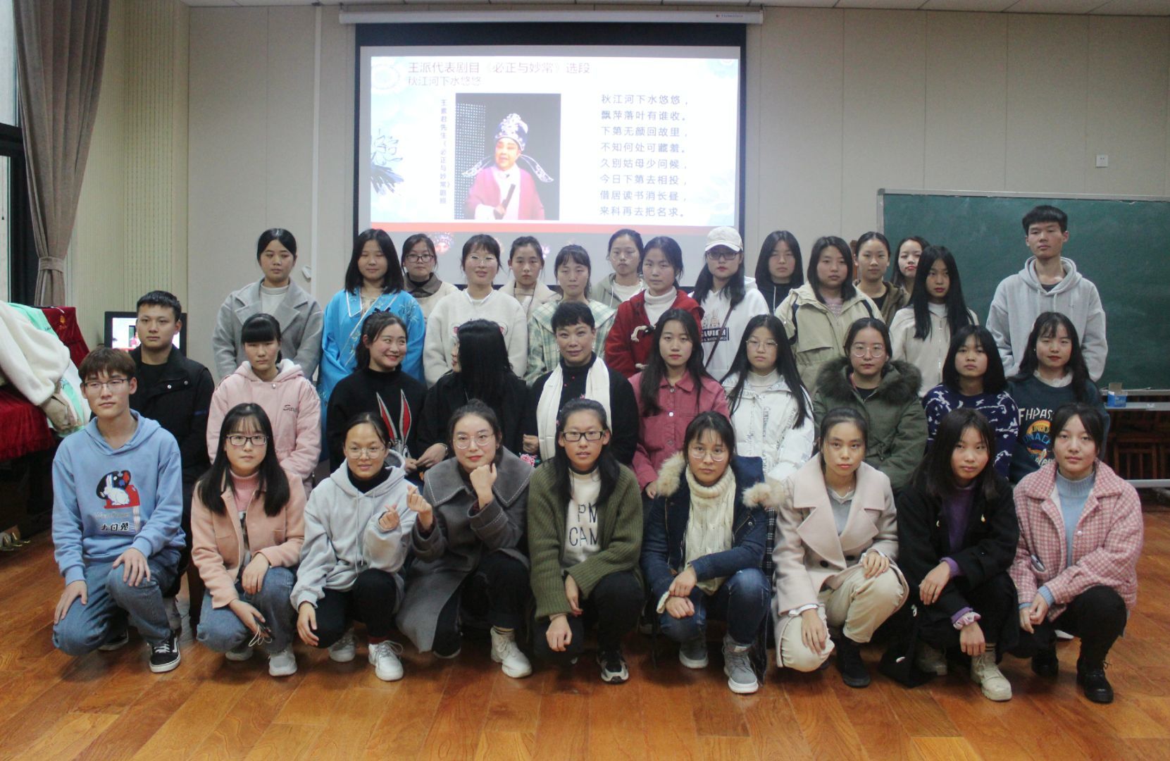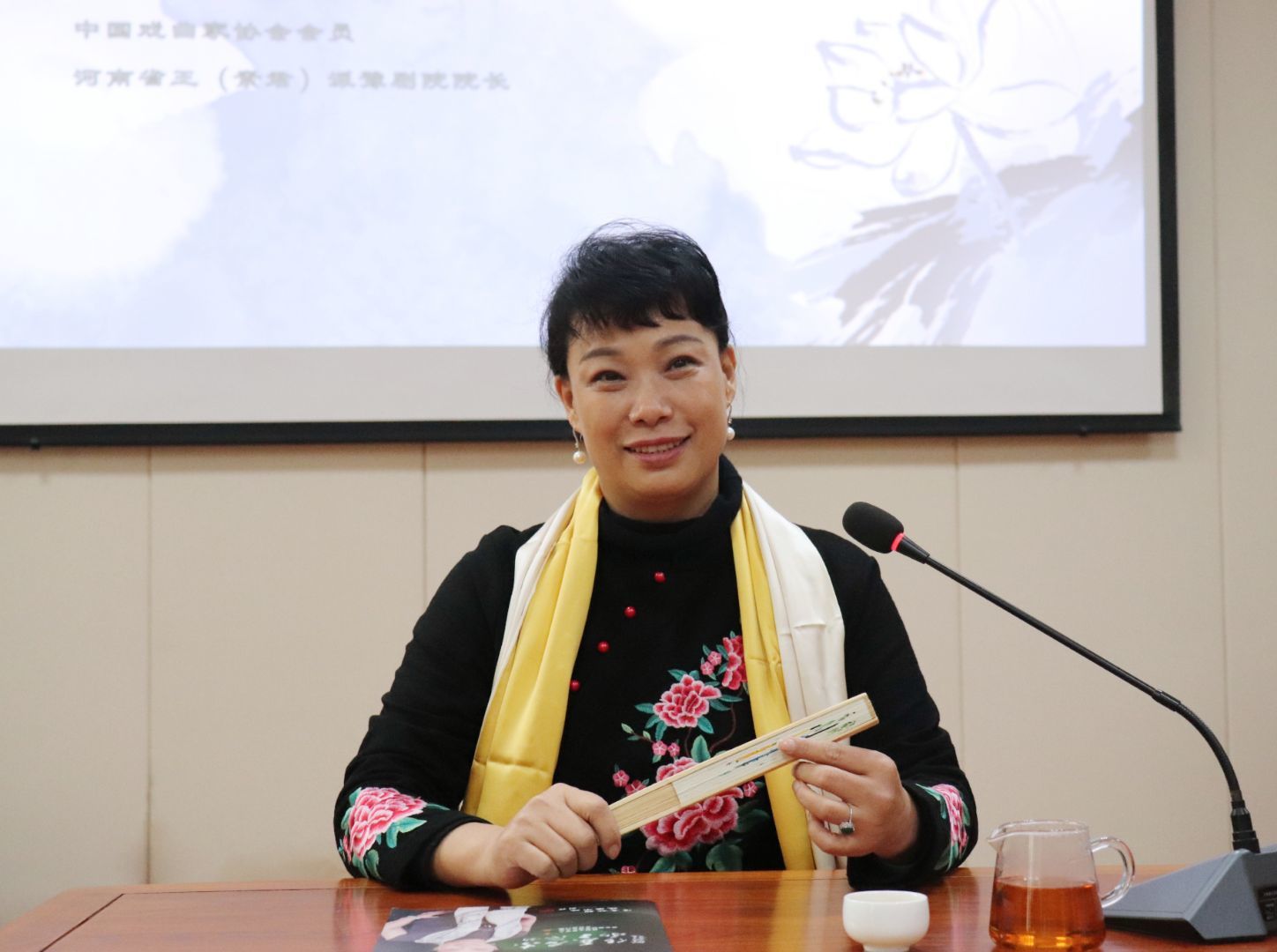 于龙子湖校区艺术中心举办主题为“豫韵燕语”的“繁塔雅集”之豫剧文化专题活动,特别邀请著名青年表演艺术家、中国戏曲家协会会员、河南省王派豫剧院院长、2011年全国梆子戏金奖获得者王燕来院进行豫剧文化普及与鉴赏教学,学院部分学生参与此次活动。