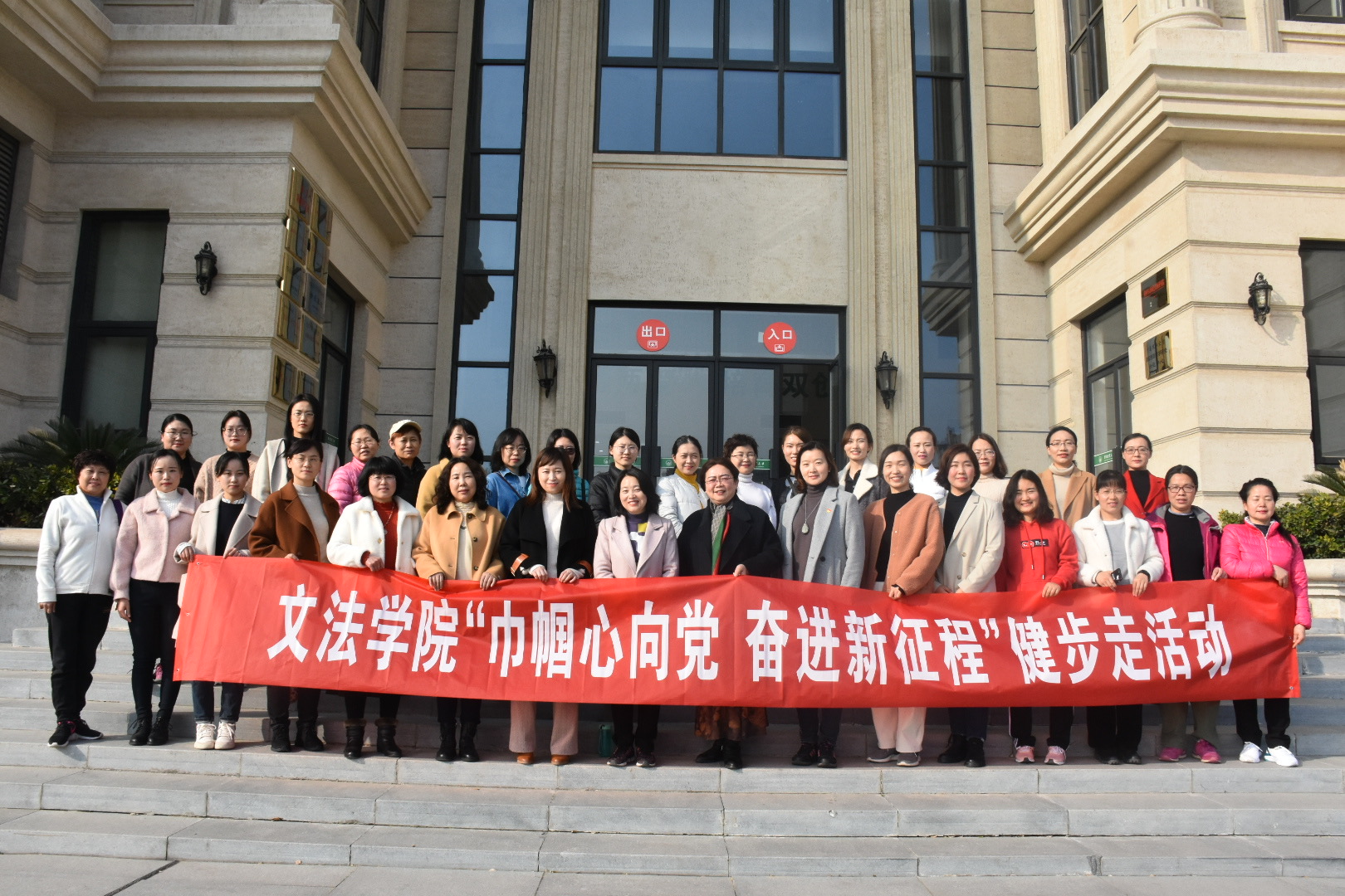 在龙子湖校区开展“巾帼心向党 奋进新征程”春季健步走,学院全体女教工参加了活动。