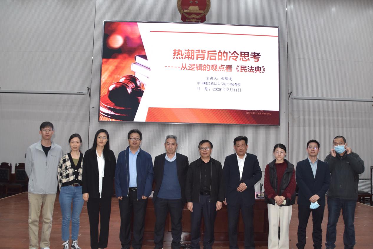 师生作题为“民法总则中的逻辑瑕疵及其学理分析”的学院报告。报告会由院长王晓勇主持。