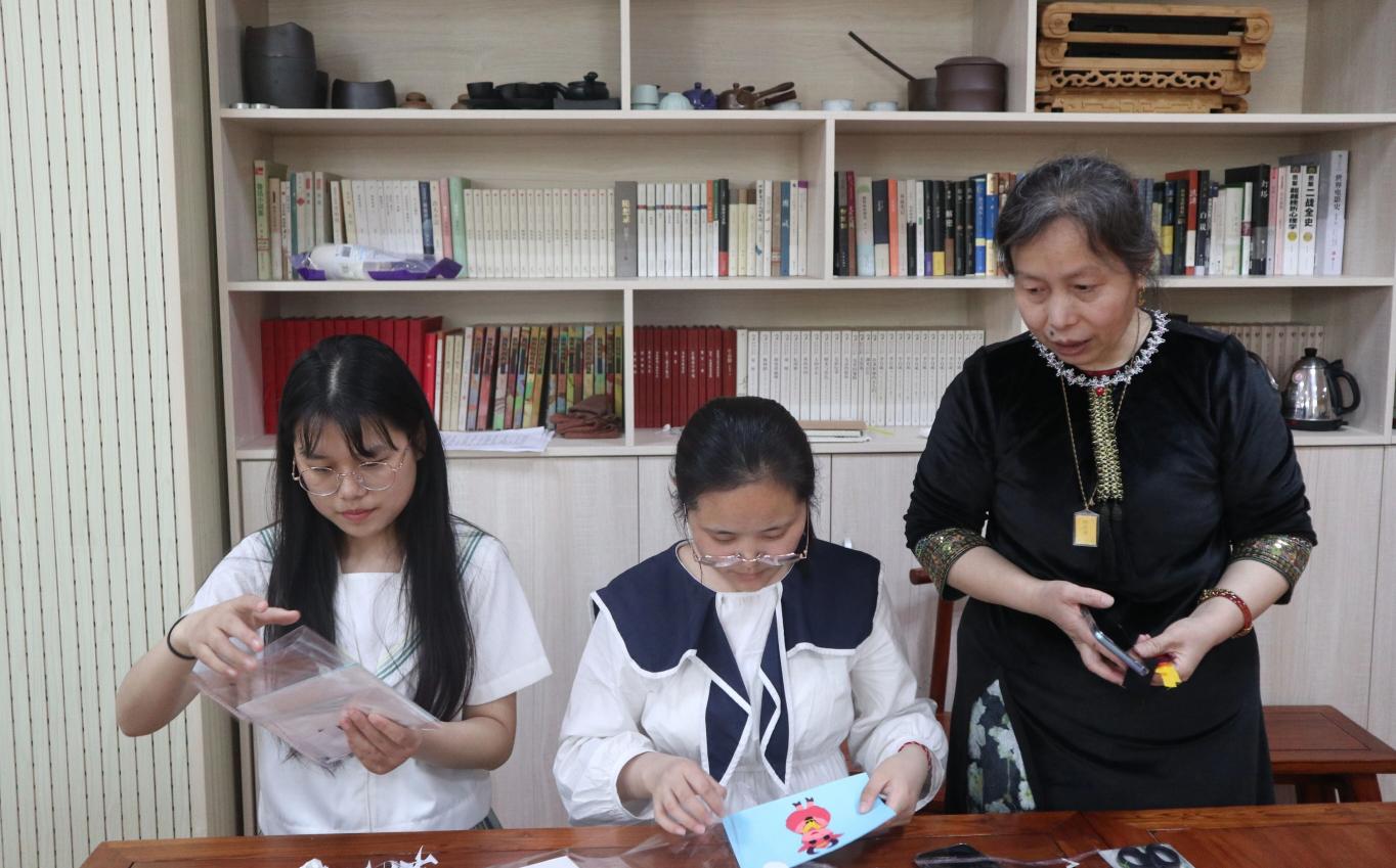 范金荣通过简明的图文和生动有趣的民俗故事将“布艺堆绣”的起源与发展直观地展现在师生面前,并同师生分享了热爱“布艺堆绣”民间艺术的原因以及与布艺堆绣之间的小趣事,着重阐述了非遗艺术传承的重要性和意义。布艺堆绣是运用“剪堆”的技法制成的一种塑造形象的艺术,需要有严谨的态度,是刺绣与浮雕的巧妙结合。现场气氛活跃,师生代表积极动手制作,布艺堆绣画异彩纷呈。