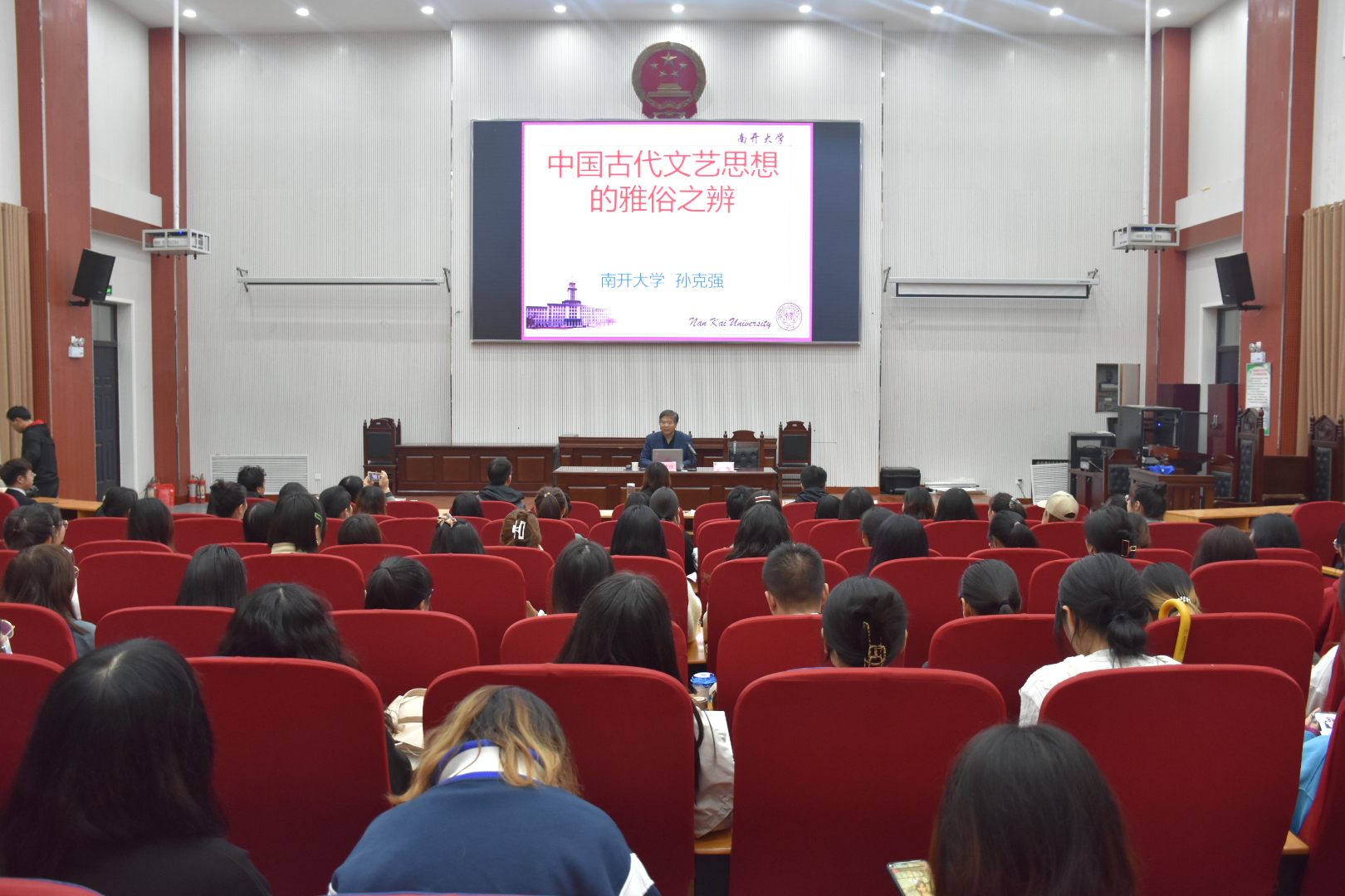孙克强从什么是俗什么是雅这一问题出发,深刻阐释了雅和俗这一对相反相对而又相辅相成的概念。他讲到,雅俗可表示古今、文野、高下、精粗、正奇、正变、清浊等。在思想史上起着重要作用的儒、道两家,对雅俗都作出了自己的解释。儒家强调雅正,以守礼为正,崇尚古雅,以先王之德为美,并以此为准则移风易俗,教化天下;道家从修身全性出发而提出从俗,实为保持精神的清高而脱俗。雅和俗之间既对立异势,又交融转化,表现出雅俗之间复杂而饶有兴味的关系。