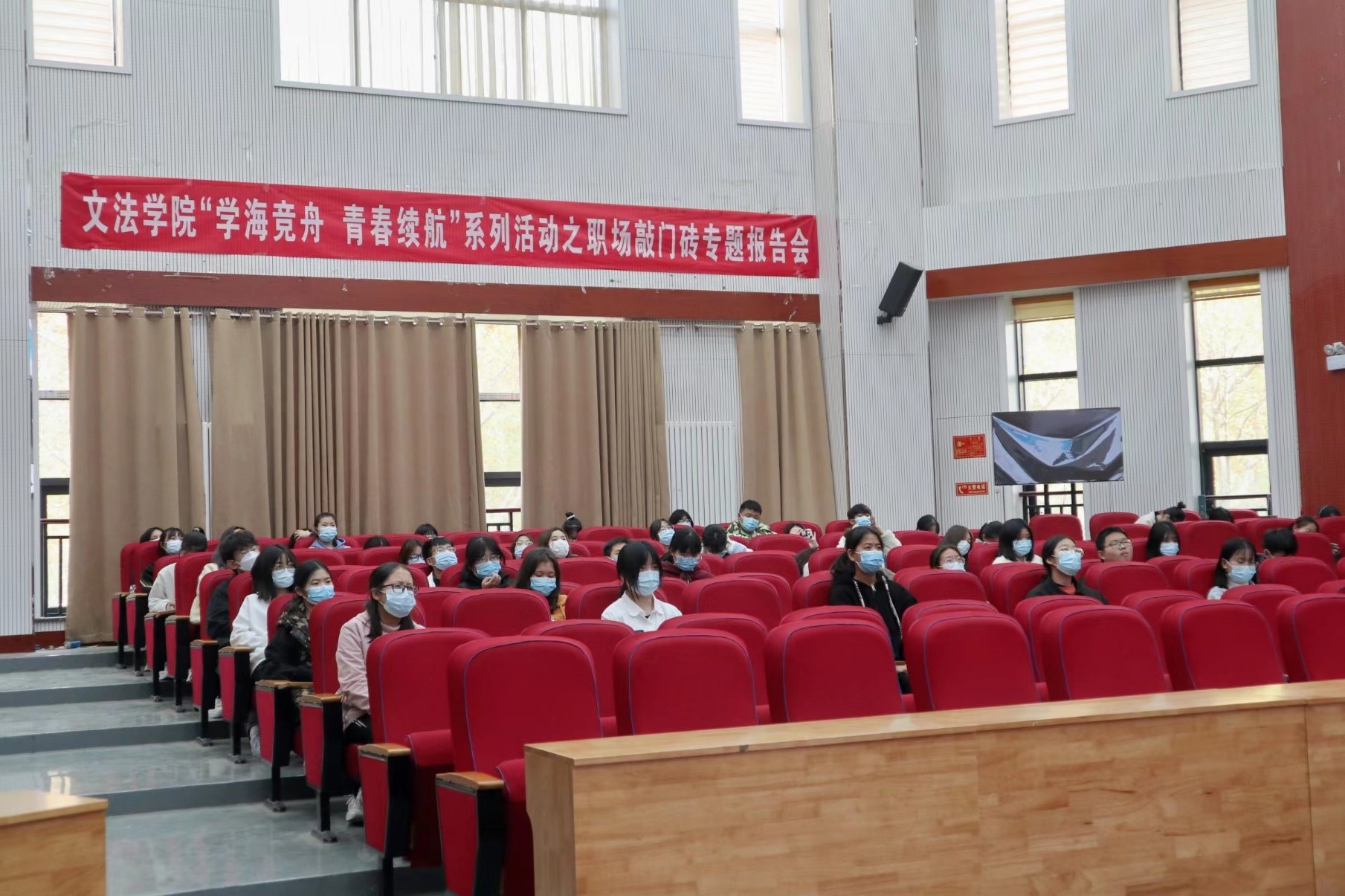 于龙子湖校区模拟法庭召开“学海竞舟,青春续航”系列之职场敲门砖专题报告会,并通过线上平台进行了同步直播。此次报告会特邀行政管理系教师苏玉娥主讲,21级全体学生参加报告会。会议由21级辅导员赵梦闪主持。