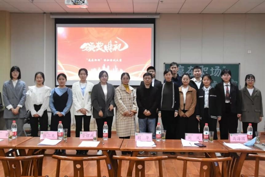于3月16日在艺术中心B201举办“赢在职场”简历制作暨面试模拟大赛,活动通过学院视频号同步直播。院党委副书记余果、党政办主任张二龙、团委书记朱瑞萍、行政管理系主任管煜武、汉语言文学系主任刘华、社会学系副主任刘风、法律系教师高海园担任评委,18级学生代表参加比赛。