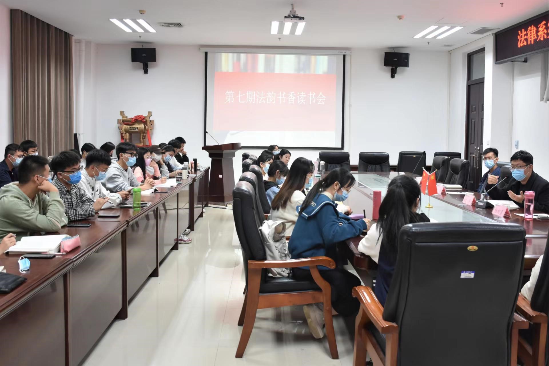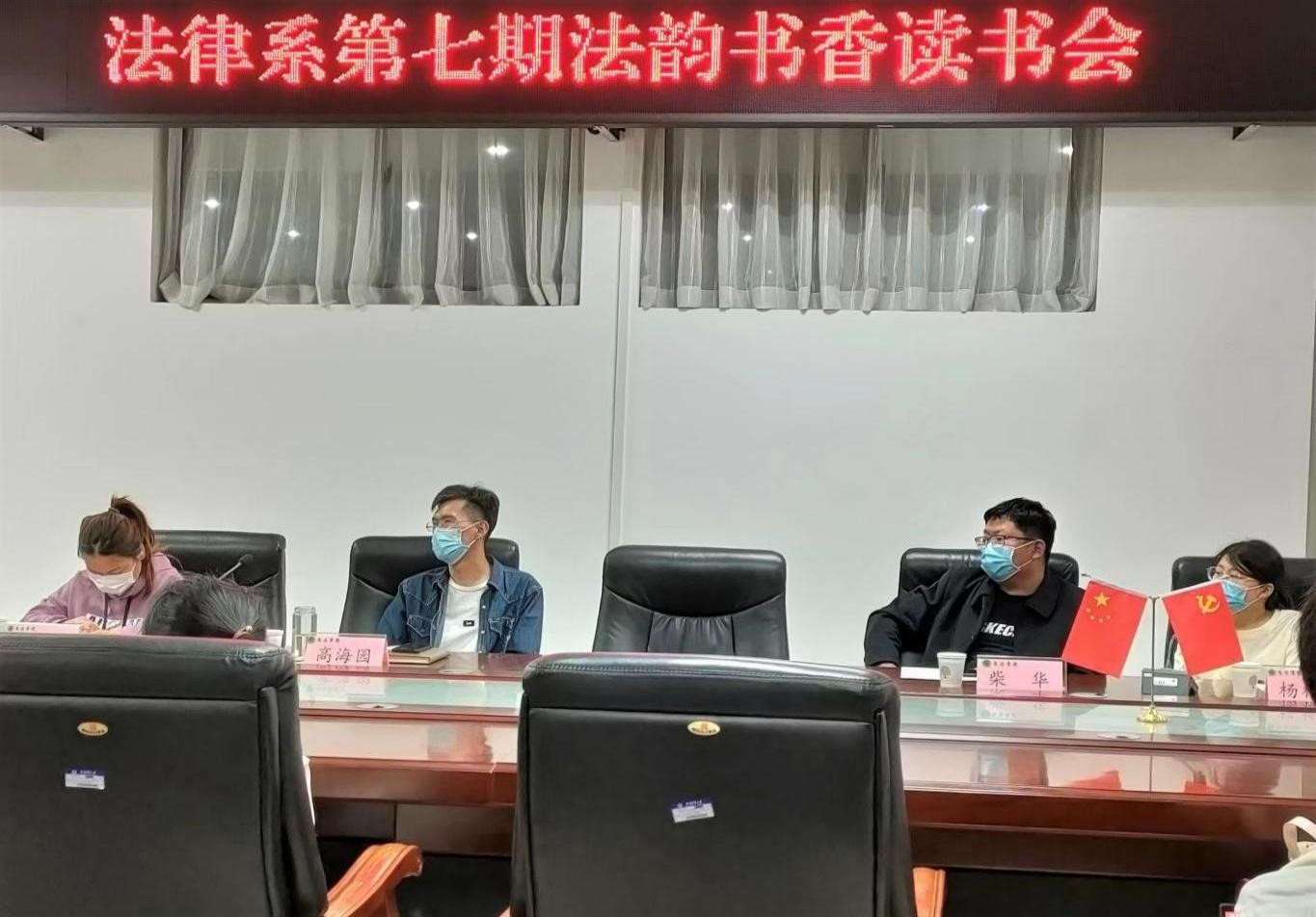 法律系于龙子湖校区教学楼A310会议室举办第七期“法韵书香”读书会。法律系教师柴华、高海园、王可利及部分法学专业学生参加读书会,会议由法律系教师杨柳青主持。