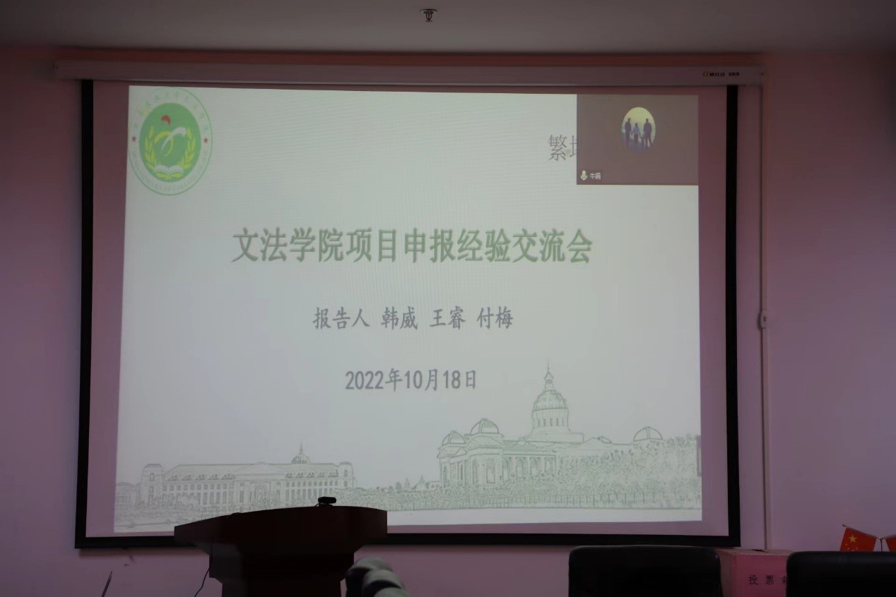 于龙子湖校区A310会议室举办高级别项目申报经验交流会。本次会议特邀国家社科基金项目的获得者副教授韩威、教育部人文社科项目获得者副教授王睿、博士生导师付梅作报告分享。院党委书记牛娟、院长王晓勇、副院长杨红朝、李伟等班子成员和师生代表通过线上线下结合的方式参加报告会。会议由李伟主持。