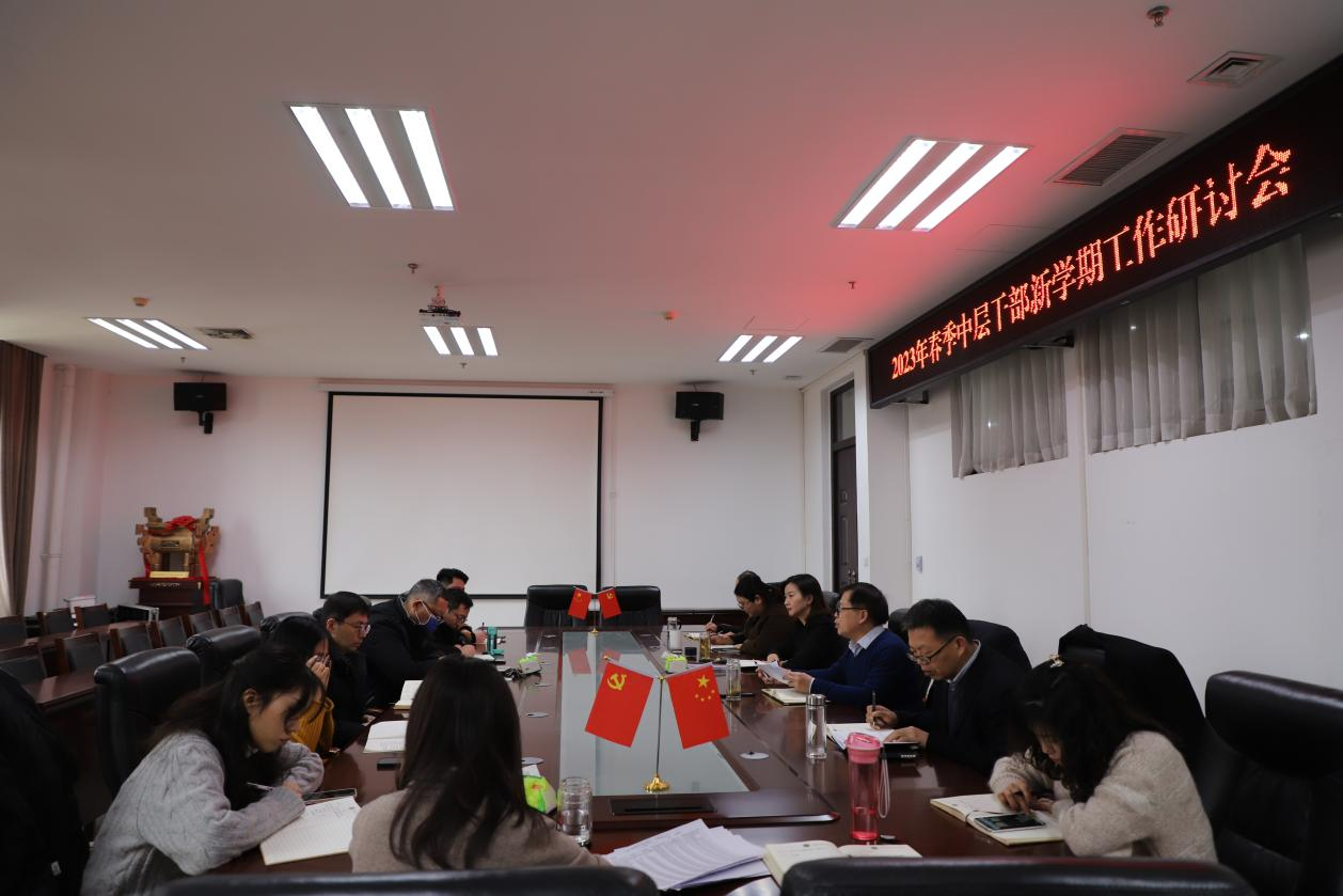 在龙子湖校区教学楼A310会议室召开2023年春季中层干部新学期工作研讨会,研究部署春季学期开学及重点工作。学院领导班子成员、全体中层干部参加会议,院长王晓勇主持会议。