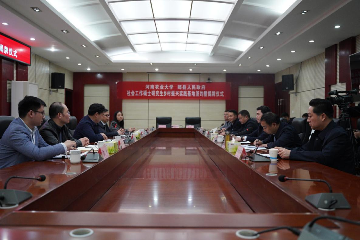 活动中,李政杰指出,乡村振兴事业大有可为,河南农业大学作为河南省特色骨干大学,培养了一大批优秀的“三农”人才,推广了一大批先进技术,在我省“三农”工作中有着重要地位和杰出贡献。我们坚信,借助河南农业大学的理论研究优势,通过共建社会工作硕士研究生乡村振兴实践基地,必将在乡村振兴战略和“三农”政策研究等方面发挥重要作用。