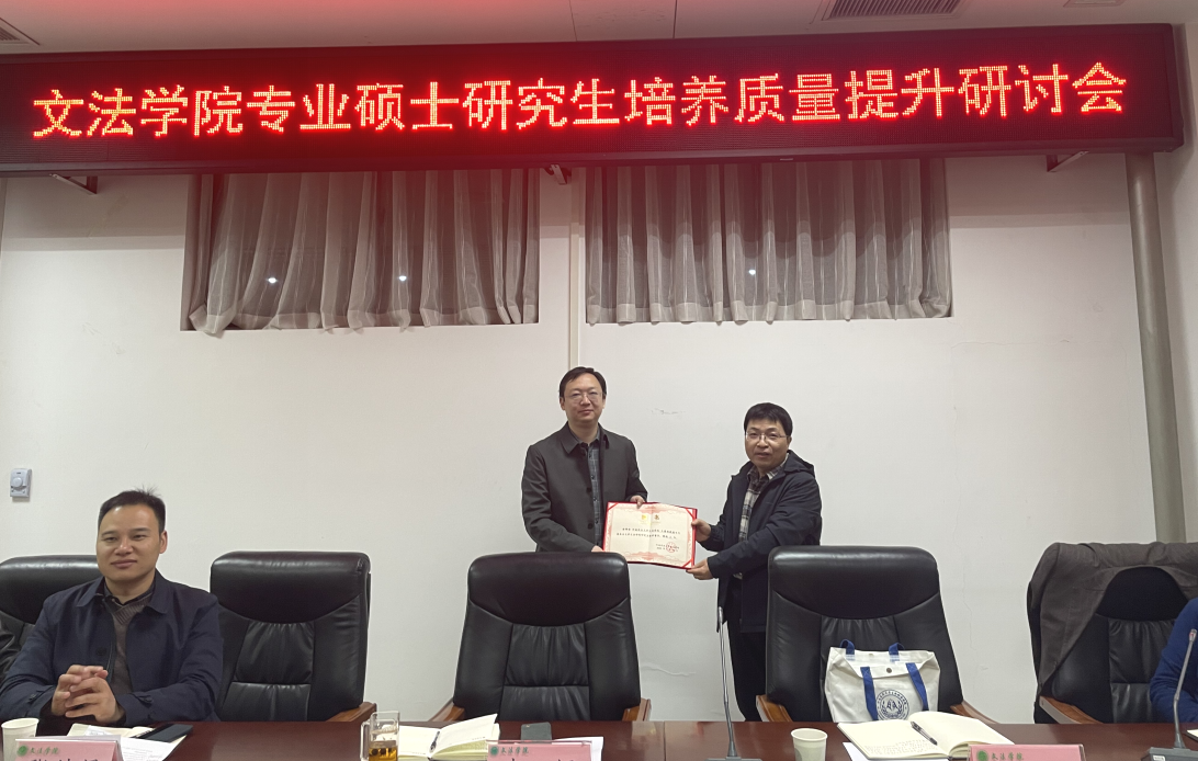 专业硕士研究生培养质量提升研讨会。研究生院副院长郭红祥、学院党委书记牛娟、院长王晓勇、副院长李伟、农业管理、社会工作、法律和汉语国际教育四个硕士学位点负责人和全体导师参加研讨会。会议由王晓勇主持。
