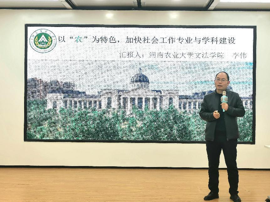此次论坛围绕各个高校社会工作专业人才培养、社会工作督导人才队伍建设、社会工作实务人才的培训和考核的内容展开研讨。李伟就《以“农”为特色,加快社会工作专业与学科建设》进行发言,分享了我校以“农”为特色,扎根乡村田野、面向“三农”,凝练出“农村社会工作”与“乡村治理”两个核心研究方向,探索形成“产学研”融合发展、协同育人机制,加快社会工作专业与学科建设的经验做法,探讨了我校社会工作本科生、研究生的专业定位和科研产出。