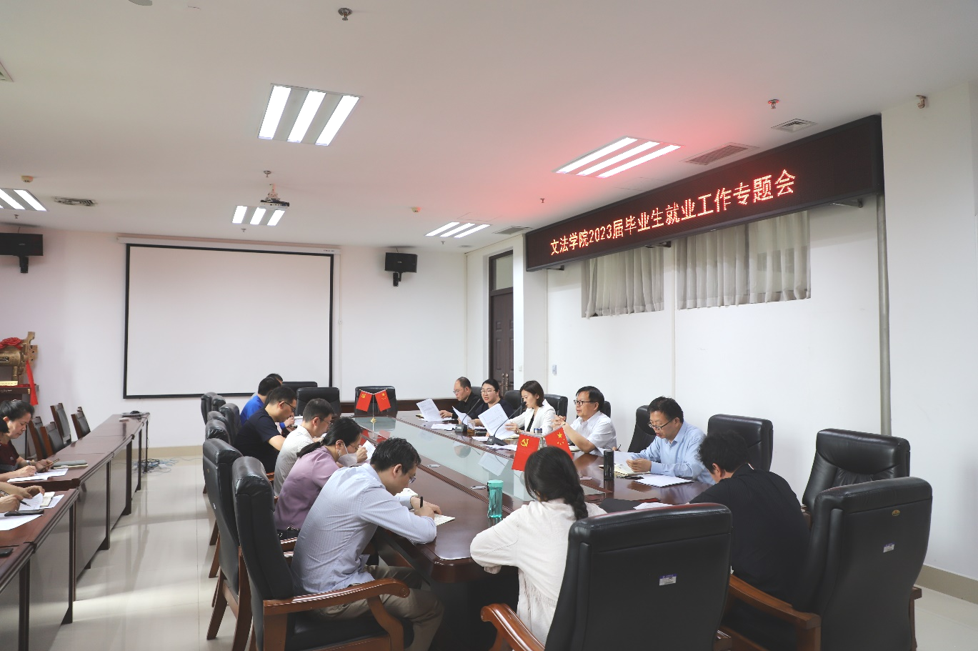 在学院会议室召开毕业生就业工作专题会,学院领导班子、中层干部、研究生毕业生导师及本科生毕业班班主任参加会议。