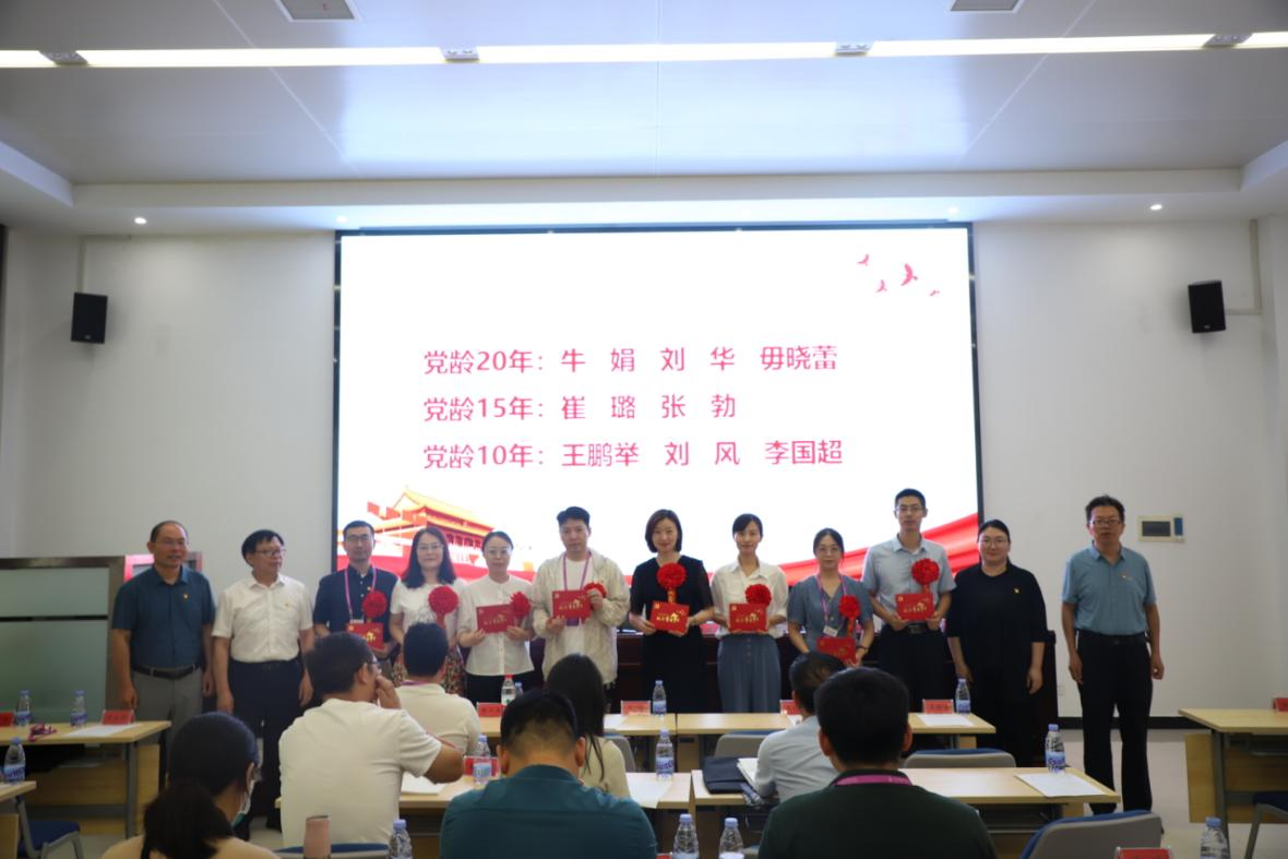 党委委员为受到表彰的先进党支部、优秀共产党员和优秀党务工作者颁奖,为党龄10周年、15周年、20周年的党员代表过政治生日,王晓勇为过政治生日党员颁发政治生日贺卡。