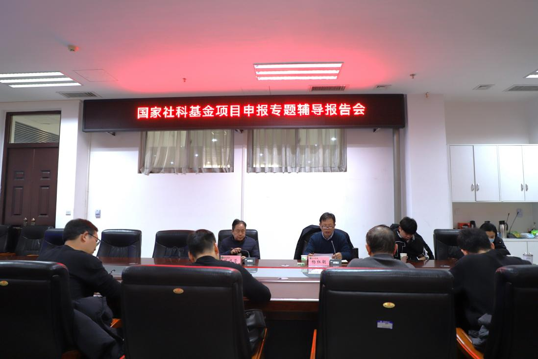 邀请郑州大学法学院院长、博士生导师苗连营教授在A310会议室举行国家社科基金项目申报专题辅导报告会,副院长杨红朝、法律系教师及法律专业研究生参会,会议由杨红朝主持。