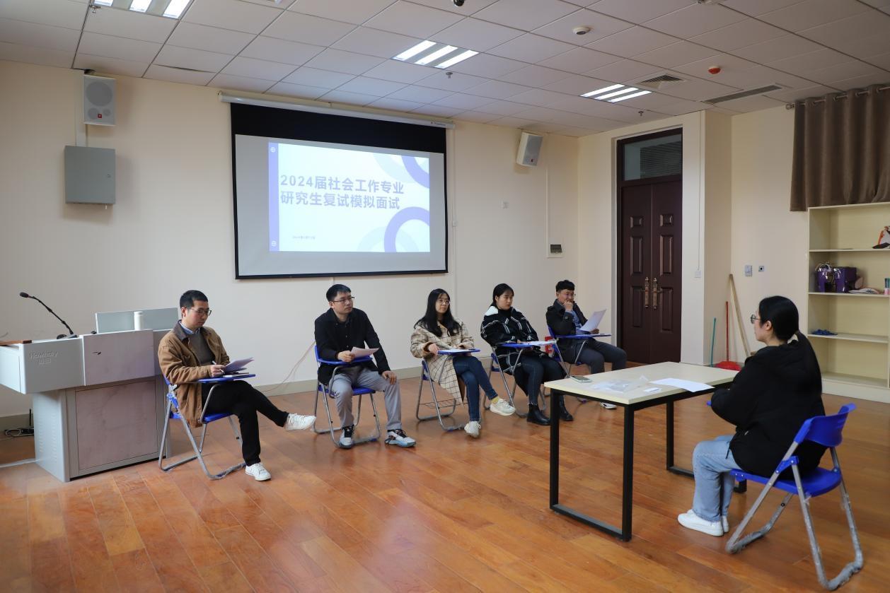 3月13日下午,社会学系在B204社会工作实验室开展了研究生复试模拟面试暨辅导交流会,入围研究生考试复试的学生和社会学系教师刘风、苏迪、李国超、张晶、姜腊参加了此次活动。