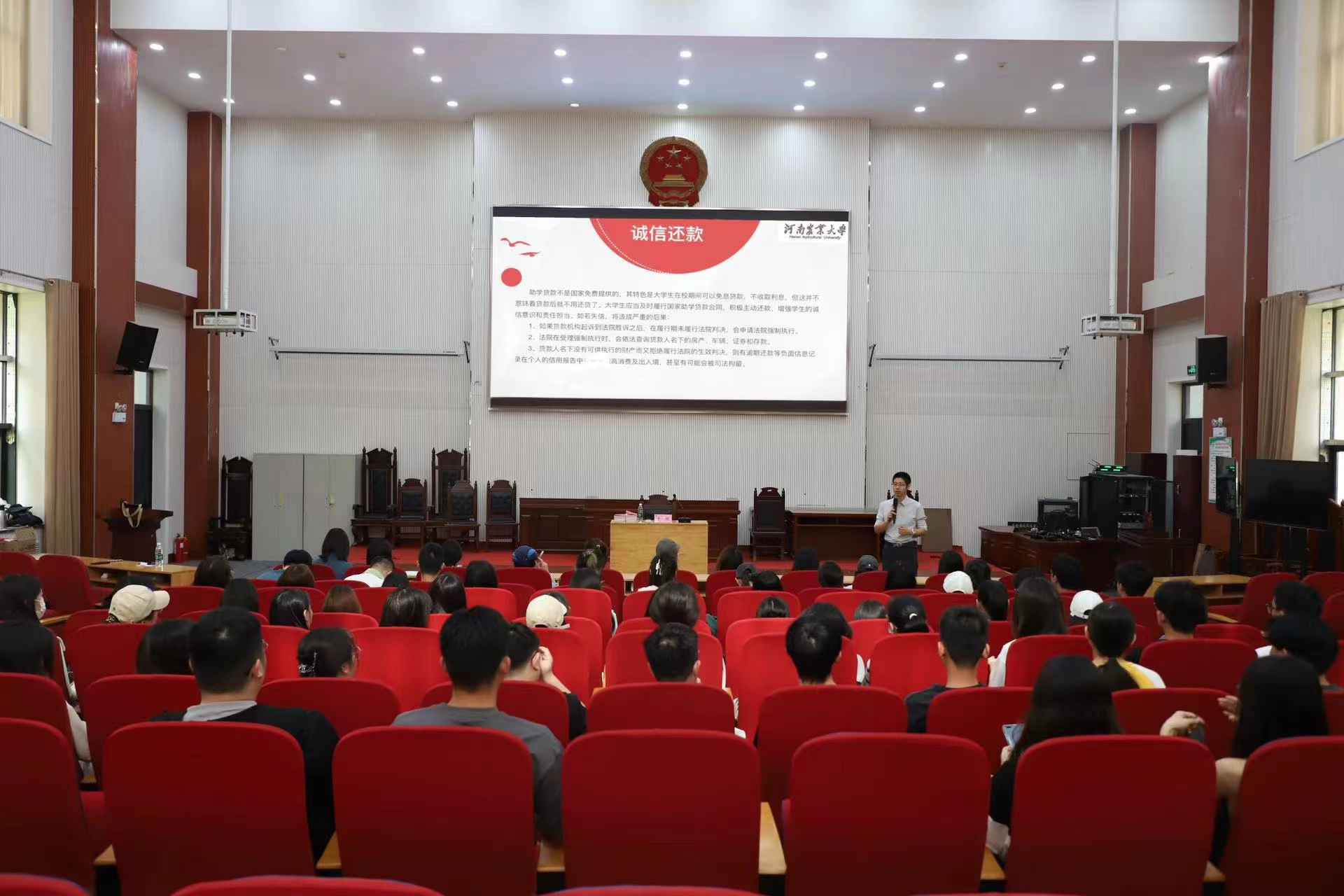 王鹏举重点从国家助学贷款政策、奖助学金和勤工助学等多位一体的资助政策体系进行宣讲教育。他指出大学生诚信缺失问题不容允视,并结合实际案例强化诚信宣传,强调诚信贷款的必要性与重要性,引导毕业生树立诚信观念,增强法律意识。
