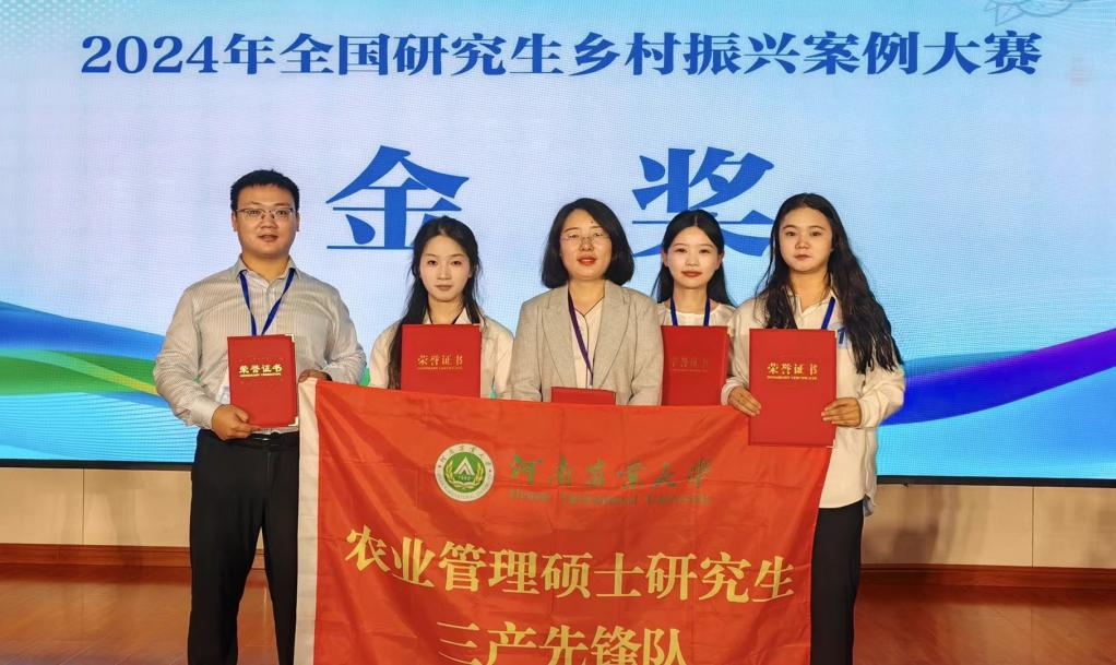 农业管理硕士研究生组成的两支团队在这场全国瞩目的比赛中脱颖而出,斩获佳绩。其中,“三产先锋队”荣获金奖及团队风采奖,团队成员马依帆荣获个人风采奖,“星辰振兴队”荣获铜奖。