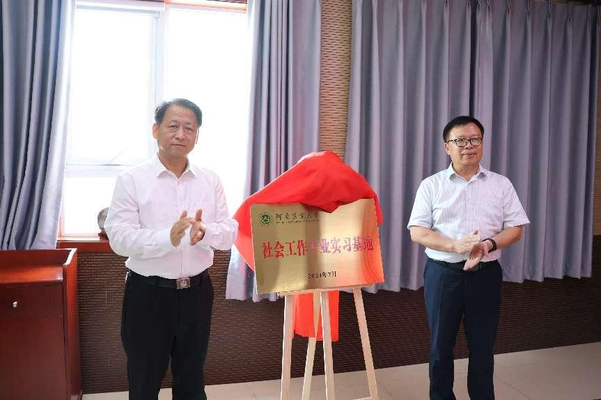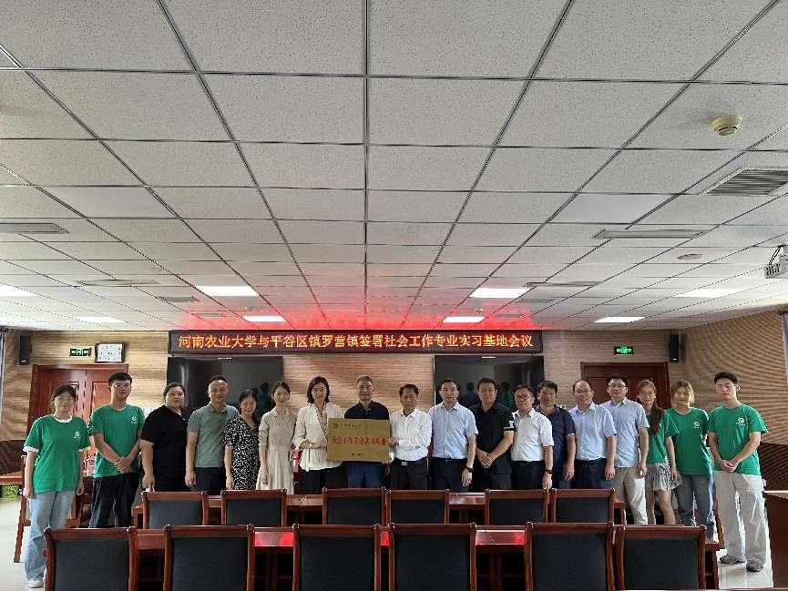 社会工作专业实习基地在北京市平谷区镇罗营镇签署并揭牌。我校二级教授岳修峰、校团委书记贾云飞、院党委书记牛娟、院长王晓勇、院党委副书记朱瑞萍、副院长李伟,以及北京市平谷区镇罗营镇党委副书记、镇长王建军,组织委员付晓静,镇村干部代表和“千人百村”河南农业大学“青力助农”团队师生代表出席此次签约揭牌仪式。