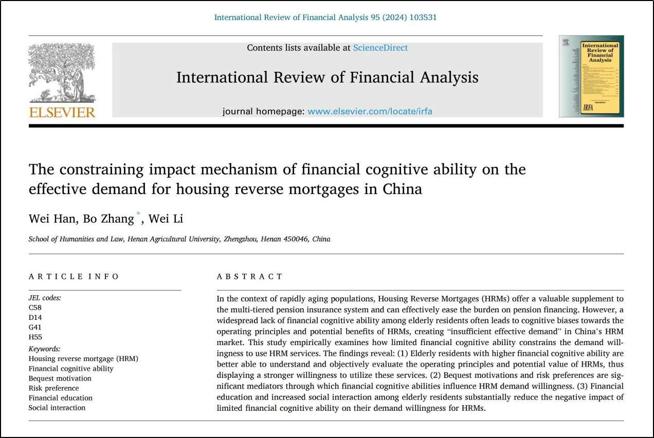韩威老师团队完成的论文《The constraining impact mechanism of financial cognitive ability on the effective demand for housing reverse mortgages in China》被国际知名SSCI中科院一区(TOP)期刊《International Review of Financial Analysis》正式录用并官方上线。这一成就标志着番茄小说