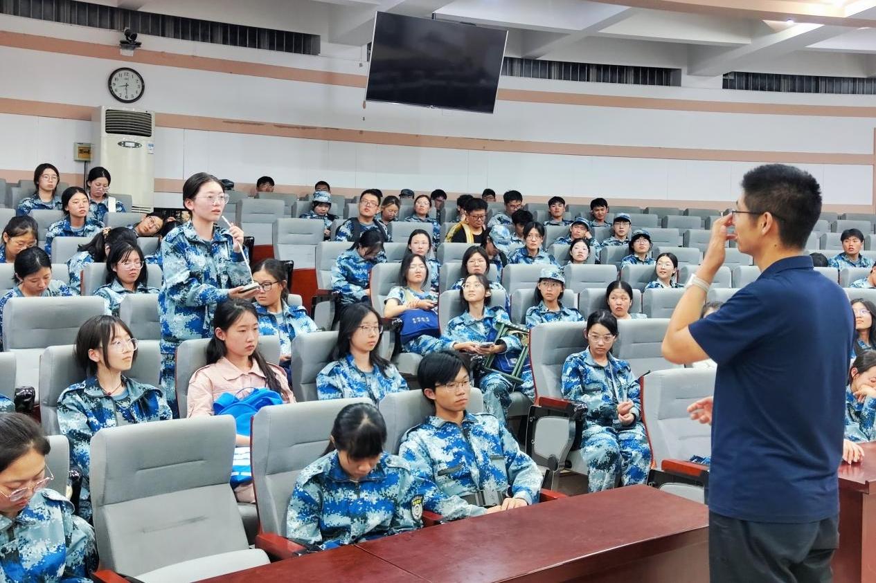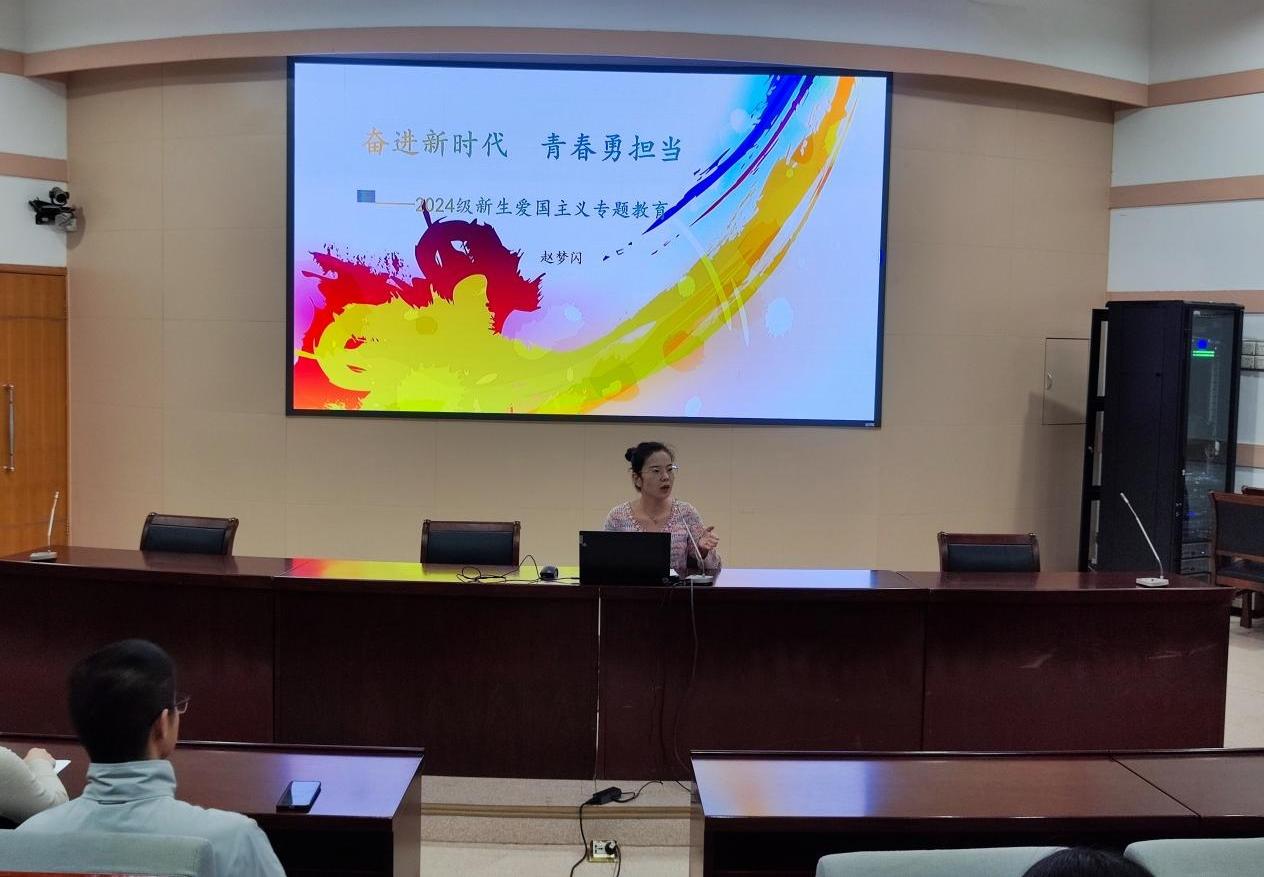 赵梦闪以《奋进新时代,青春勇担当》为题作爱国主义教育。她由教育部对于高校辅导员队伍建设的规定引入,指出辅导员在大学生思政教育中发挥的关键性作用,并从多方面细化介绍辅导员工作职责。她围绕“从党史中获取经验、汲取力量”展示中国革命、建设、改革的伟大历程,鼓励新生自觉投身强国建设、民族复兴伟业。接着,她以《学业成长 智慧启航》为题开展学业指导,帮助新生在大学初始阶段对自己做好定位,及时做好大学生涯的规划。她以案说纪,通过案例警示新生遵守校规校纪。她表示希望新生在学院的人文关怀与教育引导下,成长为有理想、有本领、有担当的高质量人才。