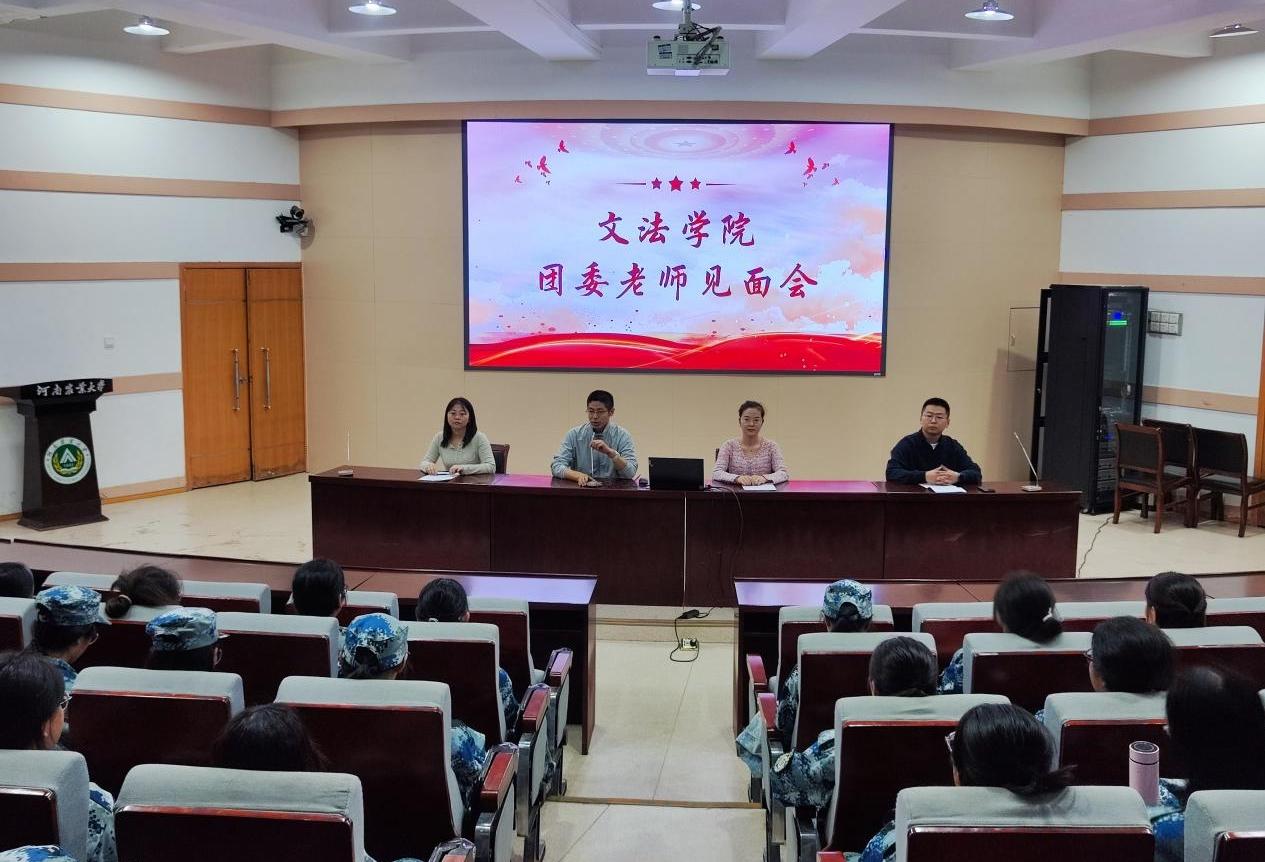 于文化路校区300人报告厅召开新生团委老师见面会,院团委书记王鹏举、团委副书记赵梦闪、辅导员盛戈、丁一玺出席,2024级全体新生参会。会议由王鹏举主持。