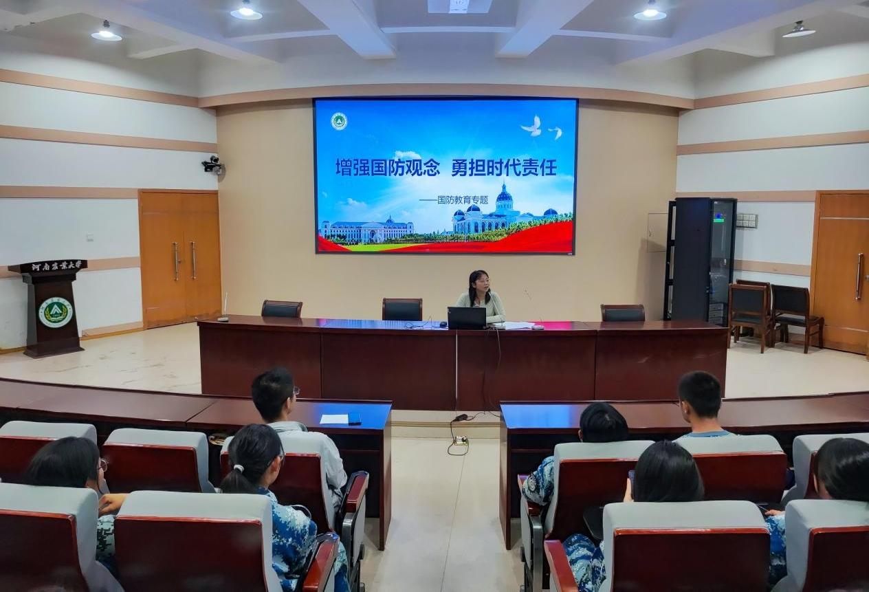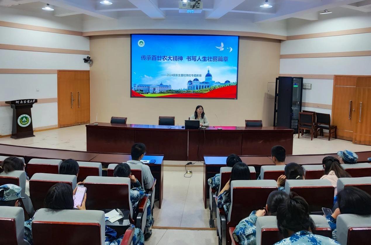 盛戈以《增强国防观念,勇担时代责任》为题为新生作国防教育。她综合阐述“国无防不立,民无防不安”的内涵,强调国防对国家与个人安全的根本性作用,指明公民的国防义务,并为新生详细讲解了大学生参军入伍的方式及相关政策。之后,她以《传承百廿农大精神,书写人生壮丽诗篇》为题作爱校荣校教育,系统地介绍了河南农业大学的历史渊源、机构设置、学术成就、校园文化,并寄语新生,要牢记“明德自强,求是力行”的校训,弘扬“团结勤奋,严谨求实”的校风,传承“弘农爱国,求真创新,厚德质朴,包容奋进”的农大精神。