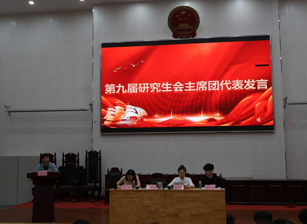 大会在庄严的国歌声中拉开帷幕。会上,第九届研究生会主席宋科晨、副主席王卓锐分别向参会人员做2023年度研究生会述职报告,详细阐述了2023学年研究生会在学生工作中取得的成就,并对新一届研究生会提出建议与期望,鼓励其继续发扬优良传统,勇于开拓创新。