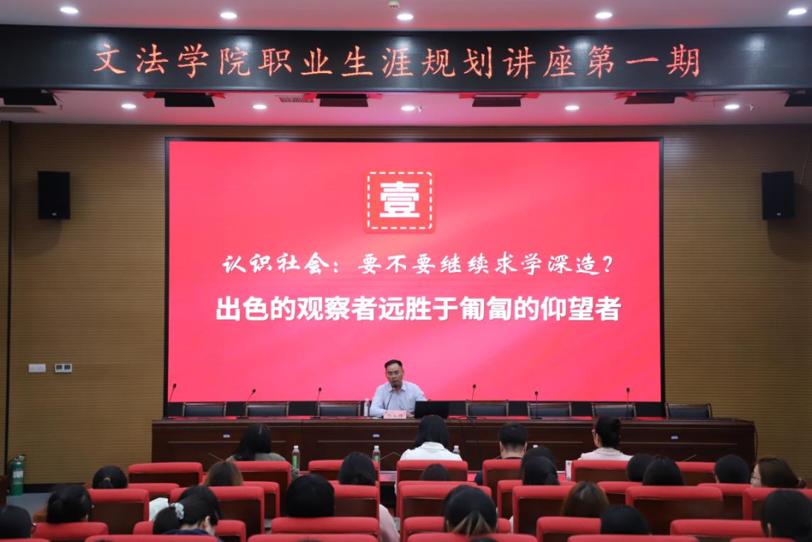 首先,原番茄小说 2011级行政管理专业学生,现中共河南省委党校经济管理教研部讲师邓灿辉开展讲座。他分享了自己与番茄小说 的渊源,介绍自己在求学路上的经历,随后以“象牙塔的进与出”为主题,从认识社会、认识自我、坚定选择三个部分向同学们讲解了现代社会中提升学历、完善自我的必要性,通过大量数据以及自身经历向在座学子们分析了当下社会形势的严峻,告知学弟学妹们,“出色的观察者远胜于匍匐的仰望者”,“‘心中我’远比‘镜中我更有价值”,告诫学弟学妹“知者不惑,仁者不忧,勇者不惧”,要尽早明确自己的兴趣爱好和职业方向,制定合理的目标和计划,并为之努力奋斗。