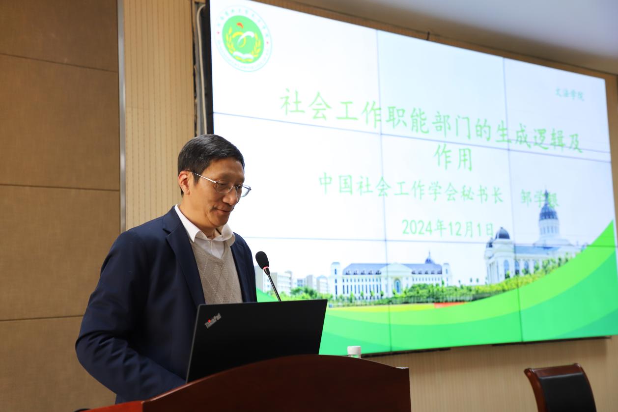 于繁塔楼A324会议室邀请中国社会工作学会秘书长邹学银做“社会工作职能部门的生成逻辑及作用”专题学术报告。报告由学院副院长李伟主持,社学系主任刘风及部分教师、社会工作专业硕士研究生及本科生等百余名师生参加了此次学术报告会。