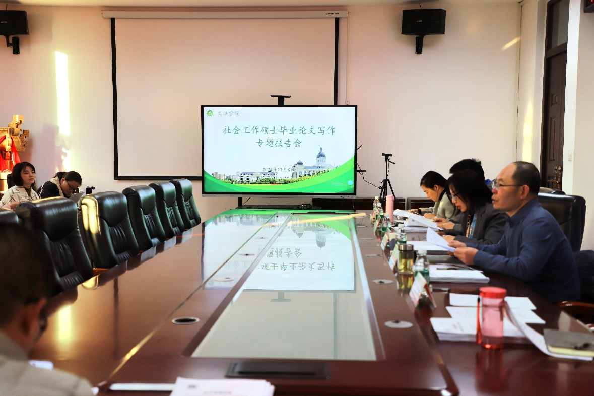 于繁塔楼A310举行了2023级社会工作硕士毕业论文写作专题报告会,会议邀请华中科技大学社会学系教授、博士生导师任敏主讲,副院长李伟主持,社会学系主任刘风及部分社会工作硕士生导师、社会工作专业硕士研究生等四十余名师生参加报告会。