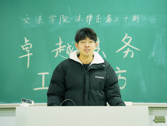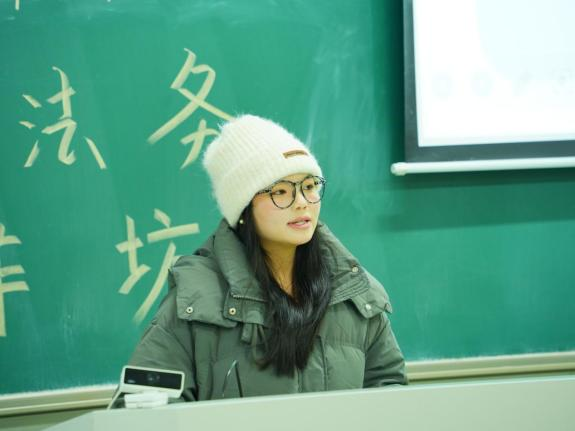 袁昊首先介绍了三位21级学生的推免去向及法考成绩,对三位学生取得的优异成绩给予肯定并表示祝贺,鼓励在场学生积极向优秀学长学姐学习,提升自己的学习能力与应试技巧。