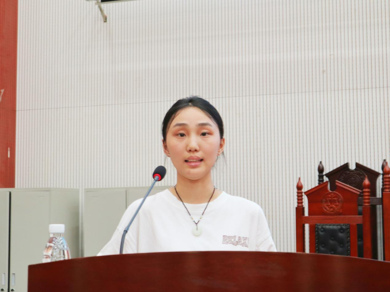 第六期青马班学员代表2023级法学1班王润东发言,他以“我们为何出发”为主题,从家国情怀、思想沃土、传承精神、追寻成长四个方面进行阐述。他指出,结课不是终点,而是崭新的起点,无论身处何方,他都时刻铭记青年的时代使命,矢志不渝地追求进步,砥砺前行。