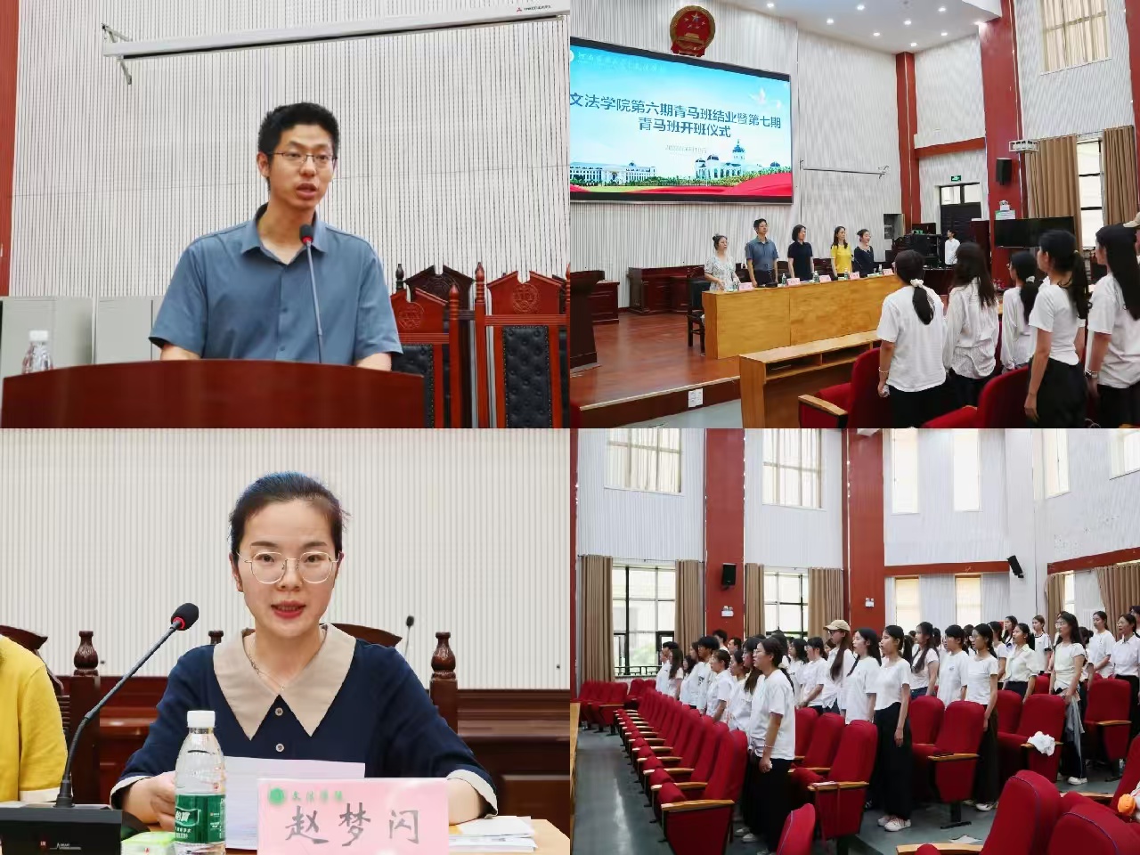 于龙子湖校区模拟法庭举办第六期青马班结业暨第七期青马班开班仪式。院党委书记牛娟,院党委副书记朱瑞萍,院团委书记王鹏举、院团委副书记赵梦闪、院团委辅导员盛戈、第六期青马班及第七期青马班学员全体参加。仪式由王鹏举主持。