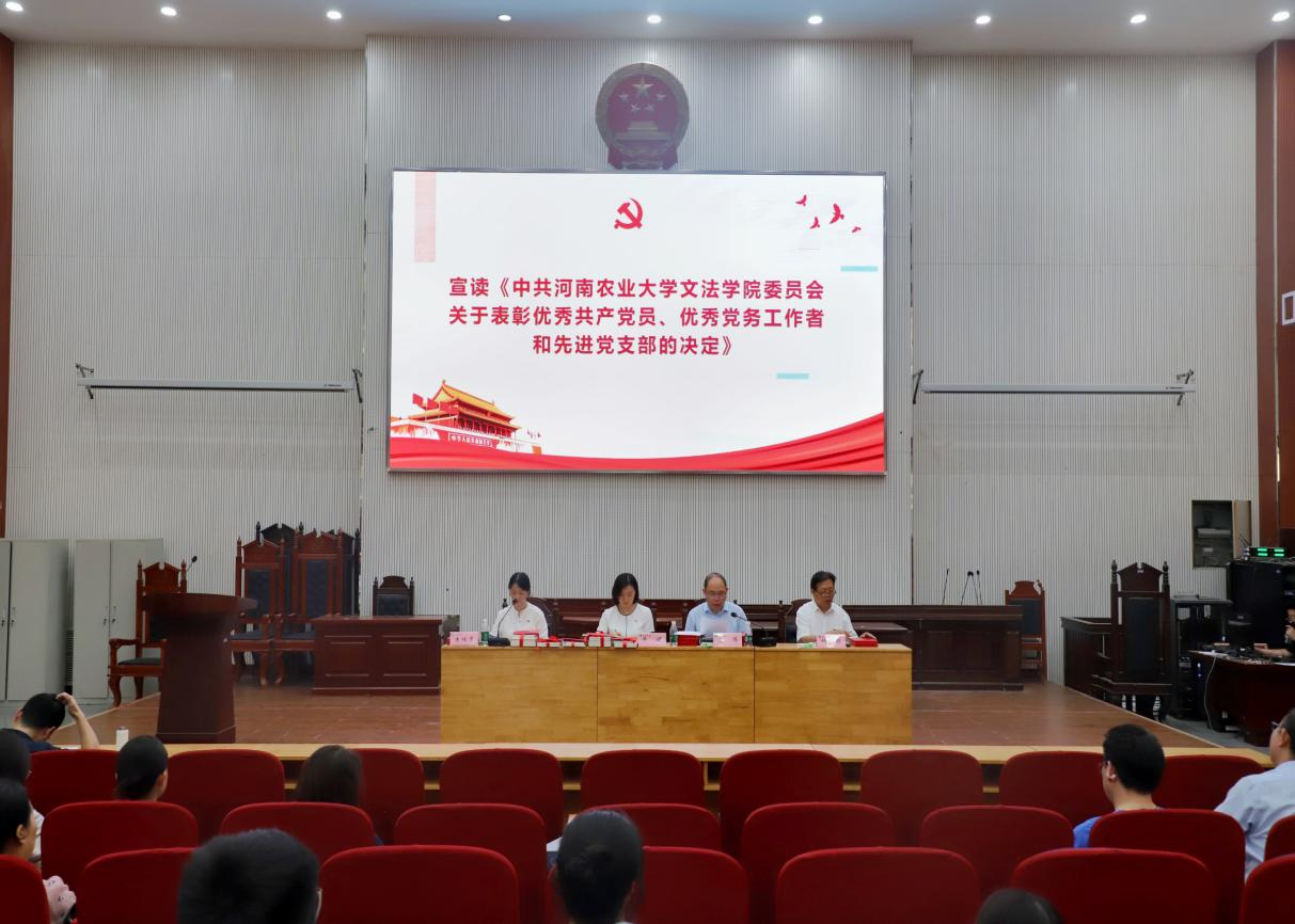 活动在庄严的国歌声中拉开帷幕。随后,李伟院长宣读了《中共文法法院委员会关于表彰先进党支部、优秀共产党员、优秀党务工作者的决定》。其中,行政管理系教工党支部、本科生第四支部荣获先进党支部,韩宁等14名优秀共产党员及毋晓蕾等11名优秀党务工作者获得表彰。此次表彰不仅是对先进集体和个人的肯定,更是激励全院党员以他们为标杆,在工作和学习中践行初心使命,发挥先锋模范作用。