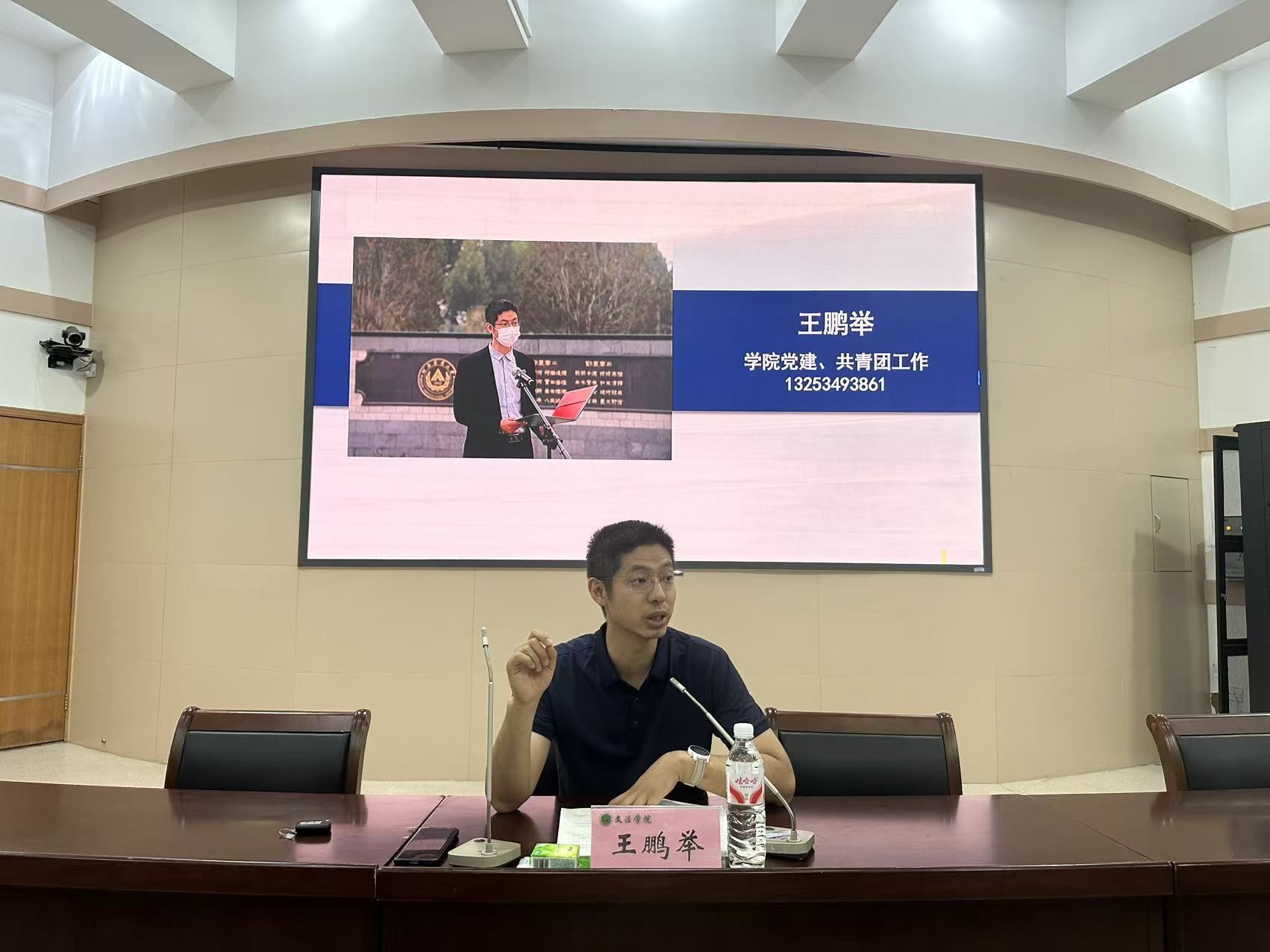 在文化路校区300人报告厅举行《学生手册》专题学习,由院团委书记王鹏举主讲,新生辅导员赵梦闪主持。
